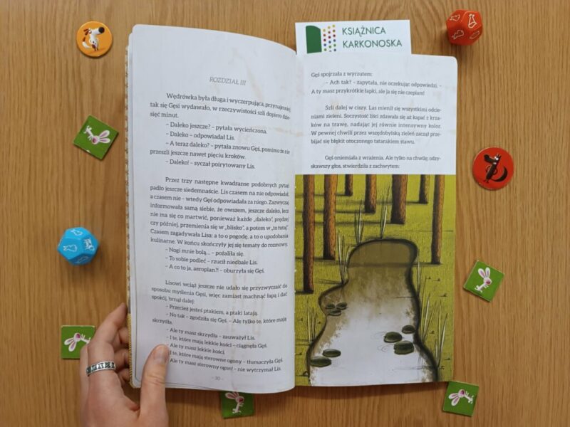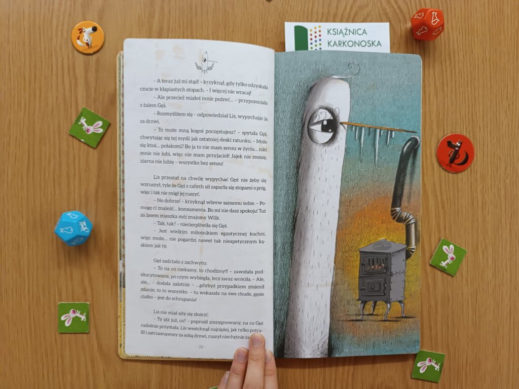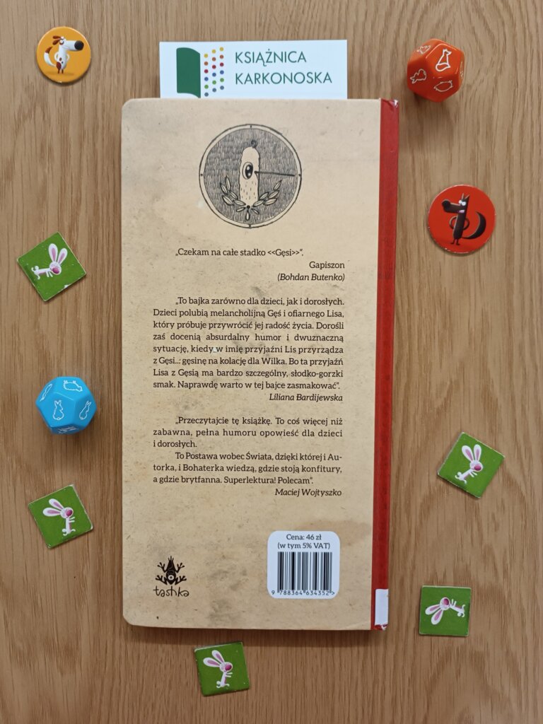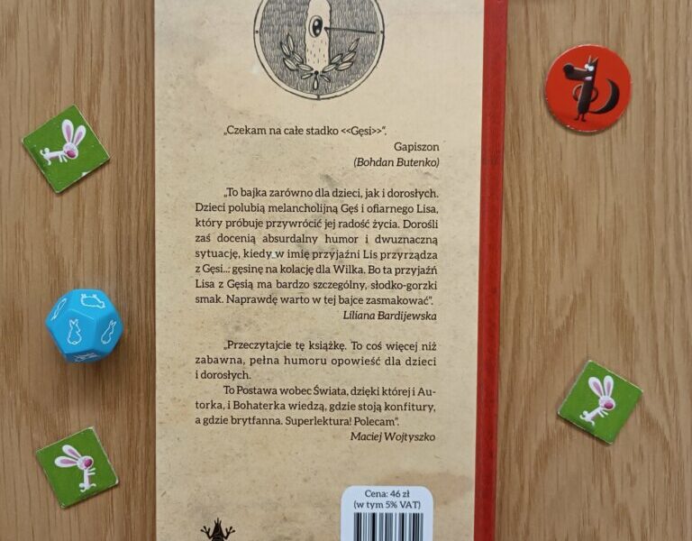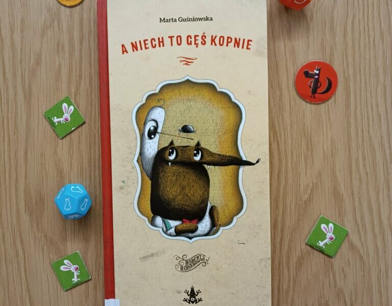 Takiego fenomenu nie powinno się przegapić. „A niech to gęś kopnie” to opowieść pełna czarnego humoru i groteski, z tekstami godnymi dobrego stand-upera. Ubawi nie tylko młodego czytelnika, ale także jego rodziców. Bo gdy Gęś z depresją postanawia dać się pożreć i z braku pożerającego wybiera się z Lisem aż za rzekę, to zwiastuje nie tylko ciekawą, pełną zabawnych pomyłek wyprawę, ale i okazję do poszukiwania zagubionego sensu życia. Nie mówiąc o tym, że Marta Guśniowska doskonale operuje słowem, by wywołać wrażenie absurdu i nieustannie łapie swoich bohaterów za słówka.