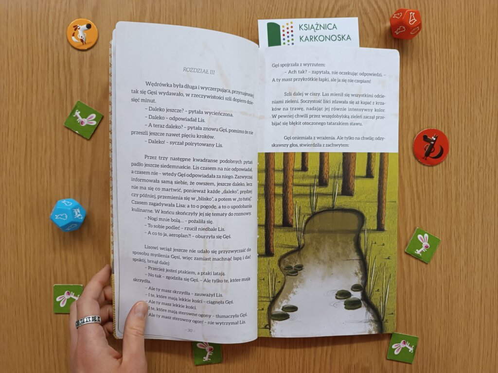 To idealna książka na szkolne przedstawienie – wystarczy obsadzić role Gęsi, Koguta, Kur, Lisa, Wilka, Niedźwiedzia oraz Pana Wydry, zrobić kostiumy, kilka dekoracji oraz rekwizyty i gotowe! Dialogi są w tekście tak rozpisane, że z łatwością będzie można przerobić je na sceniczną komedię.