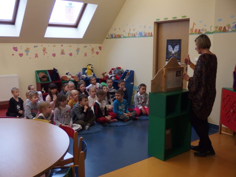Grupa  „Biedroneczki” z Miejskiego Przedszkola nr 27 w Jeleniej Górze na zajęciach pt: Zabawy z bajką – Kamishibai – tworzymy  mały teatr.