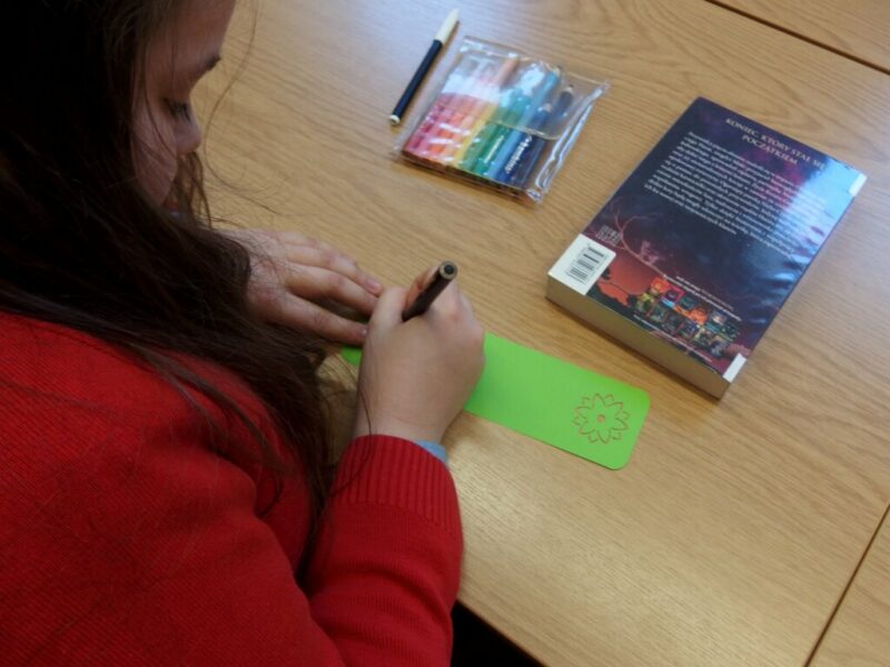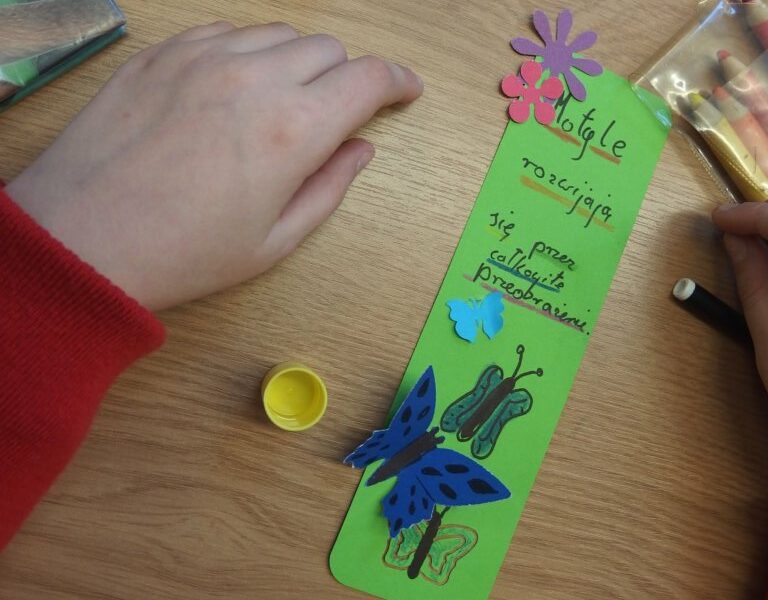 Później rozgościliśmy się w czytelni BDM, żeby przyjrzeć się kilku szczególnym książkom, dostępnym u nas do wypożyczania na miejscu. W końcu przyszedł czas na wykonanie pamiątkowej zakładki do książki (z własnym cytatem, który trzeba było najpierw odszukać w ulubionej książce). Nasi goście mogli korzystać z przygotowanych elementów, kleić, rysować i pisać, a zakładki wyszły naprawdę zachwycająco – można przyjrzeć się im na zdjęciach. Na koniec przeszliśmy do czytelni dla najmłodszych czytelników i tam było już mnóstwo radości, śmiechu i zachwytu nad zabawkami z dzieciństwa. Mamy nadzieję, że wielu dzisiejszych gości wróci do nas, by wypożyczyć upatrzone tomy i gry planszowe. Zapraszamy!
