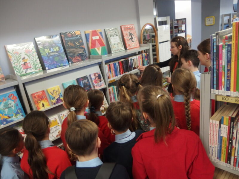 Uczniowie klasy 4 ze Szkoły Podstawowej nr 3 w Jeleniej Górze przyjechali, by poznać układ naszej Książnicy i dowiedzieć się, jak wygląda Biblioteka Dziecięco-Młodzieżowa oraz jak korzystać z jej zbiorów. Ci, którzy odwiedzili nas po raz pierwszy, usłyszeli, jak wspólnie z rodzicem założyć kartę biblioteczną i jak z niej korzystać. Następnie przeszliśmy przez liczne, biblioteczne działy, wskazując najbardziej znane serie książkowe (tu prym wiodły książki o sportowcach lub zwierzętach domowych i tomy z serii „Wojownicy”).