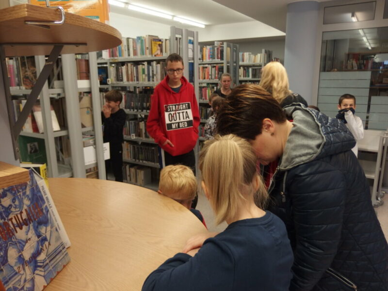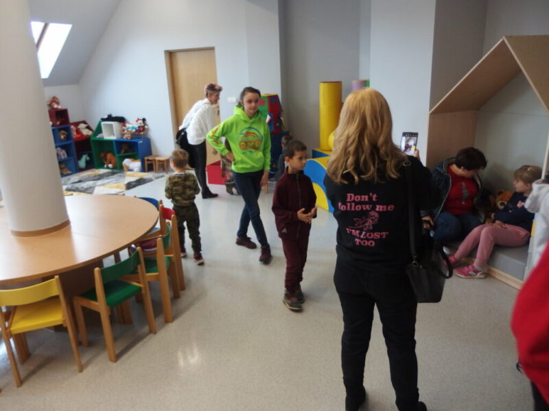Naszymi niecodziennymi gośćmi były dzieci wraz z rodzicami – uczestnicy jednego z projektów prowadzonych przez Fundację Karkonoskie Centrum Rozwoju. Goście odbyli wycieczkę po bibliotece, zapoznając się z biblioteczną przestrzenią oraz nowymi aranżacjami naszych stref przeznaczonych dla czytelników. Obejrzeli także pokonkursową wystawę „Duch Gór i jego przyjaciele z trzech krajów”. Poznali zasady korzystania z biblioteki. W drugiej części spotkania goście wzięli udział w stolikowych rozgrywkach gier planszowych.