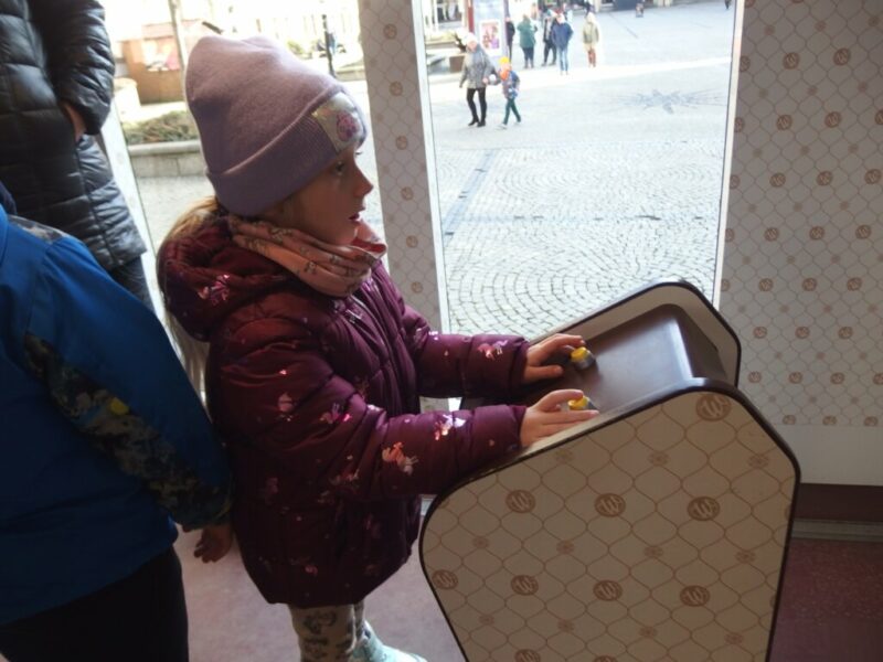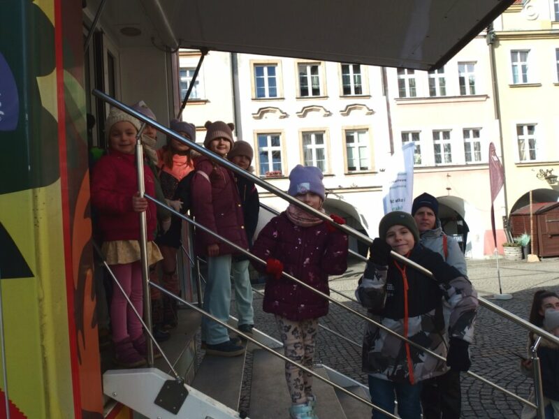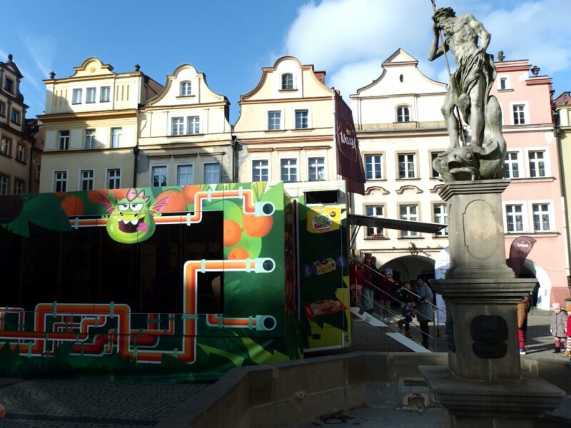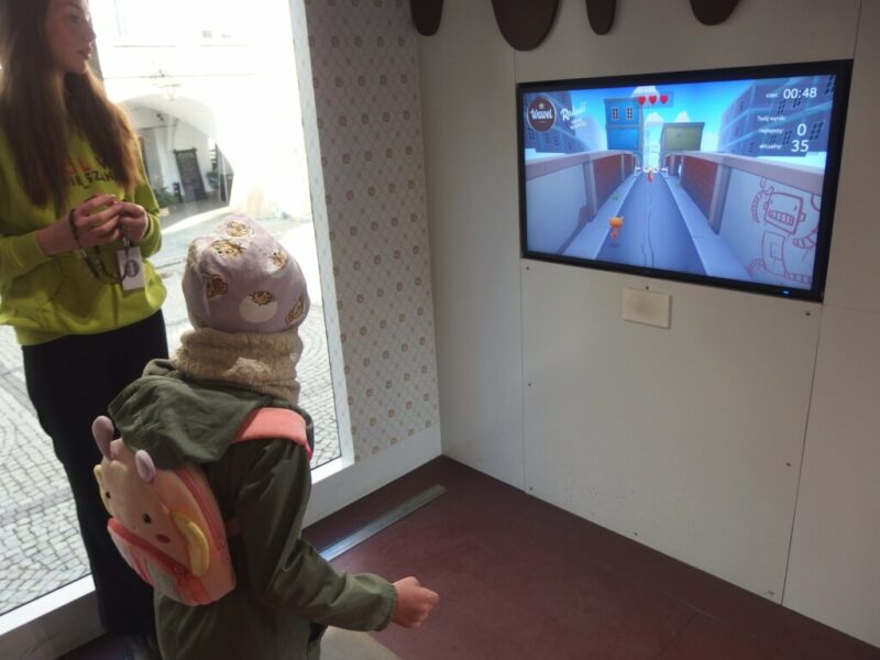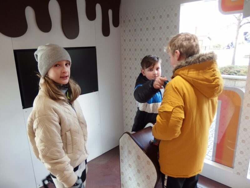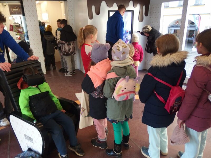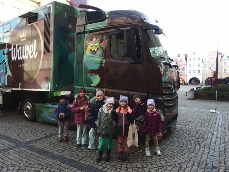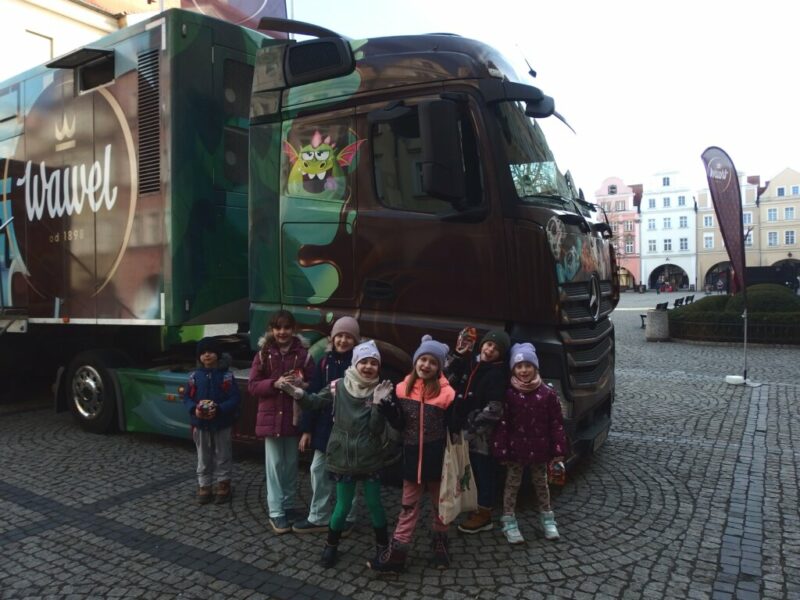 Piątkowe atrakcje rozpoczęliśmy od wyprawy do Wawel Truck – interaktywnej ciężarówki, wewnątrz której można było uczestniczyć w fascynujących, wirtualnych grach, dowiedzieć się kilku ciekawostek i skomponować pudełeczko wymarzonych słodyczy.