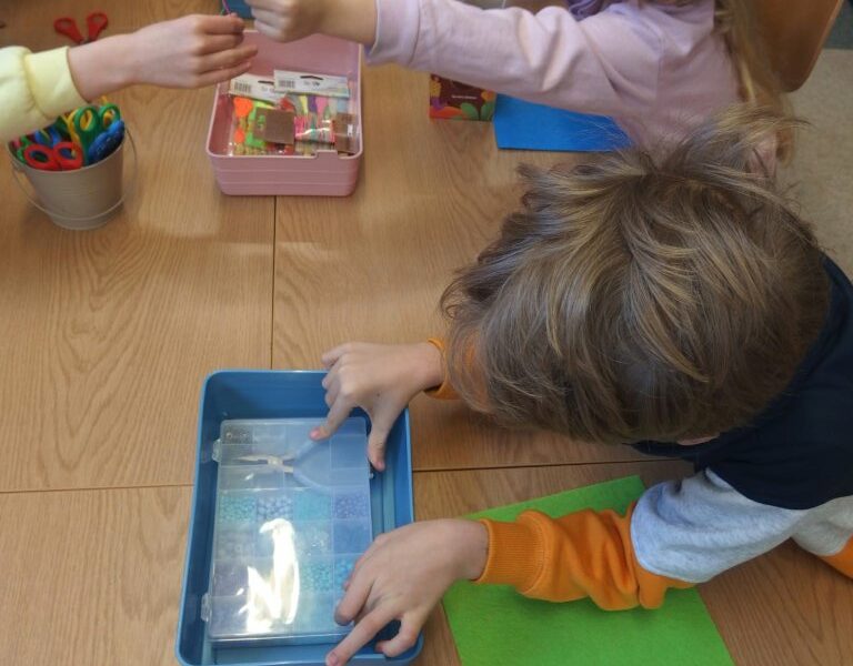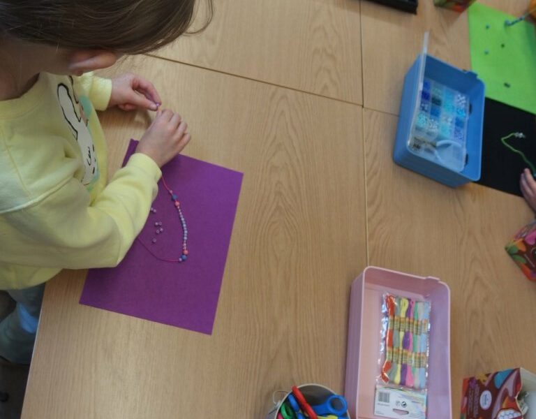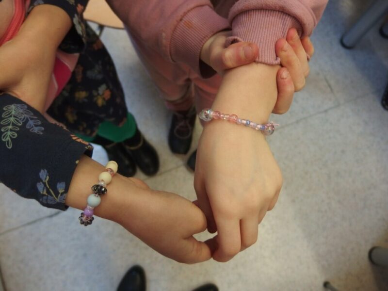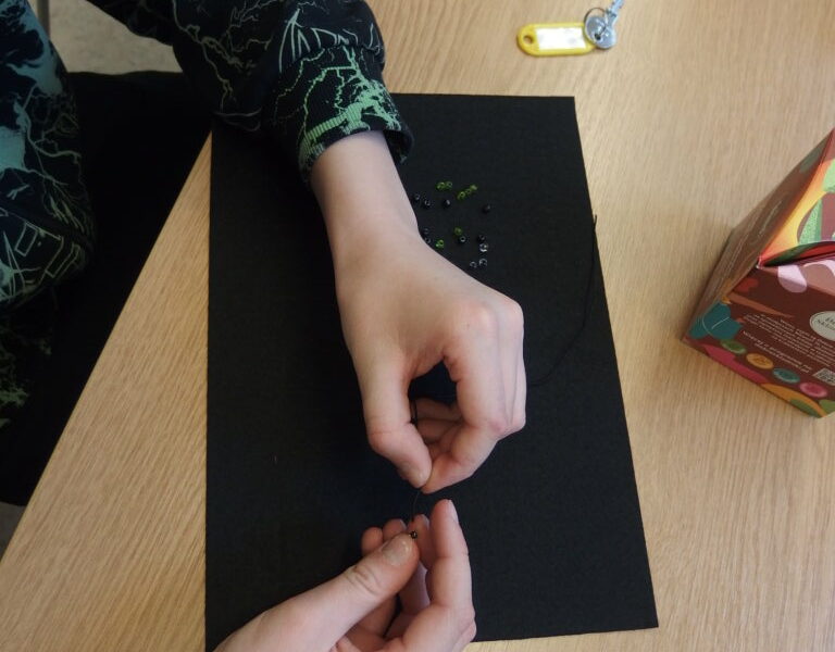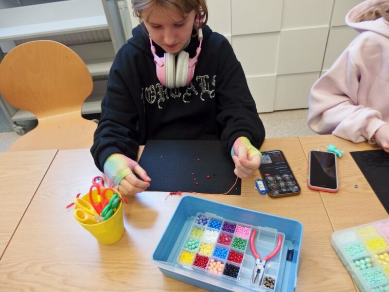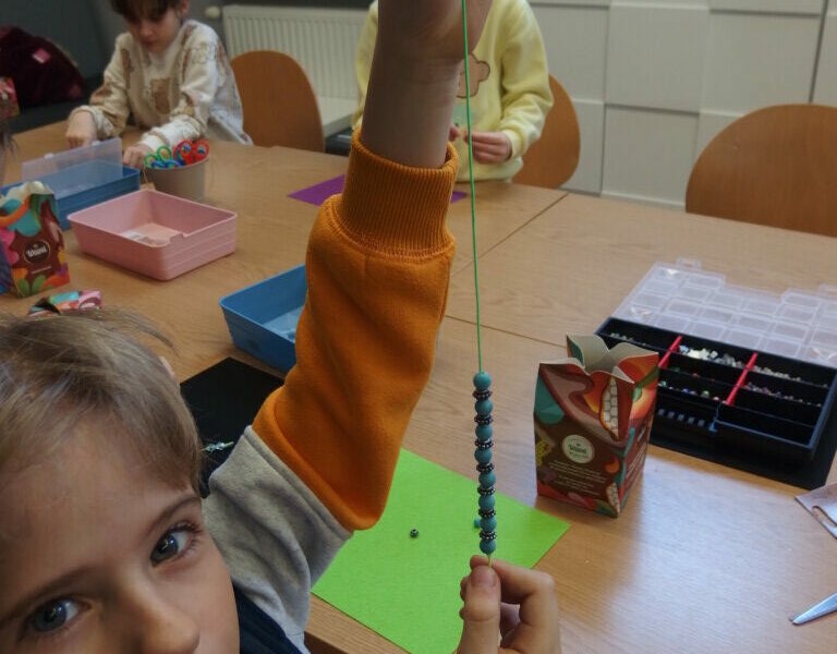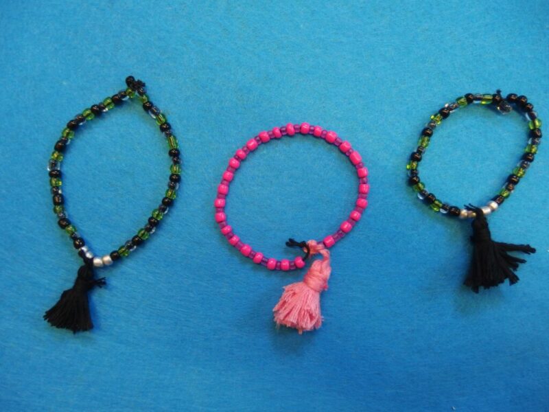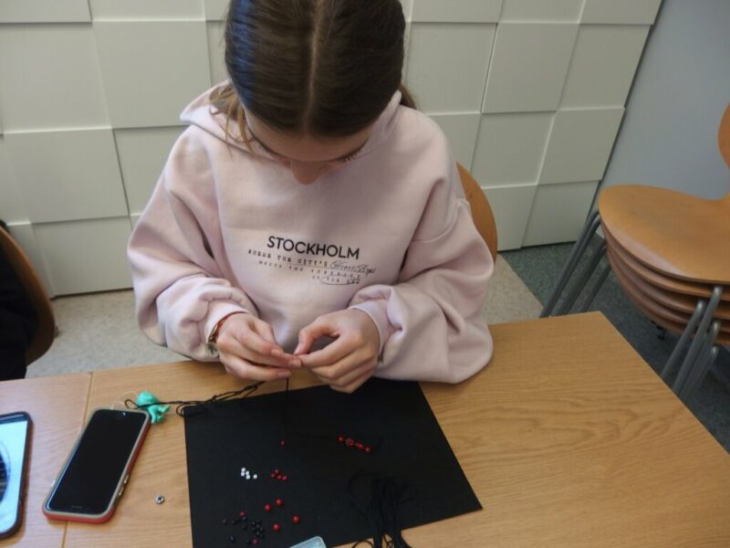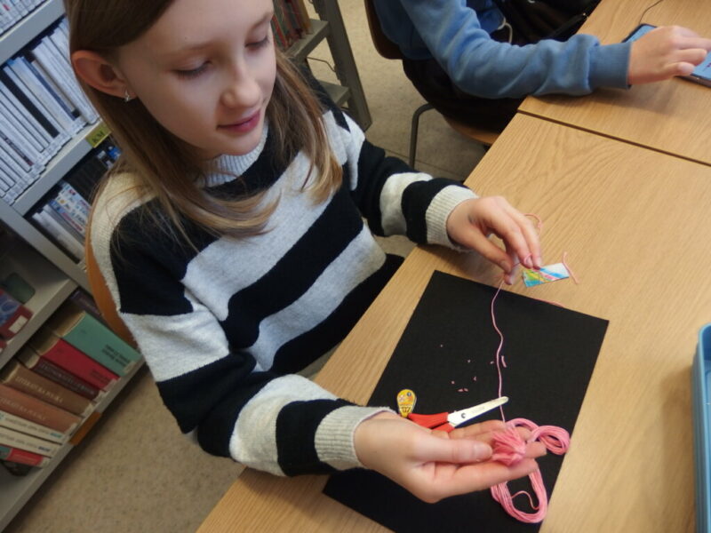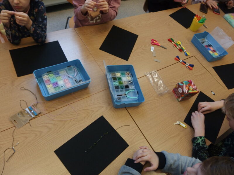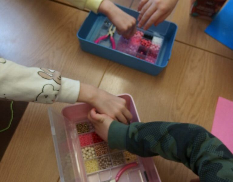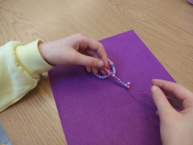 Po powrocie do biblioteki chcieliśmy dodać więcej blasku ostatniemu dniowi naszych ferii, więc w ruch poszły koraliki. Tym razem, słynąca z troski o wygląd, Panna Migotka mogłaby cieszyć oczy naprawdę różnorodną biżuterią w Bibliotece Dziecięco-Młodzieżowej. Każdy projekt był wyjątkowy i może on posłużyć zarówno za prezent, jak i stylowa ozdoba.