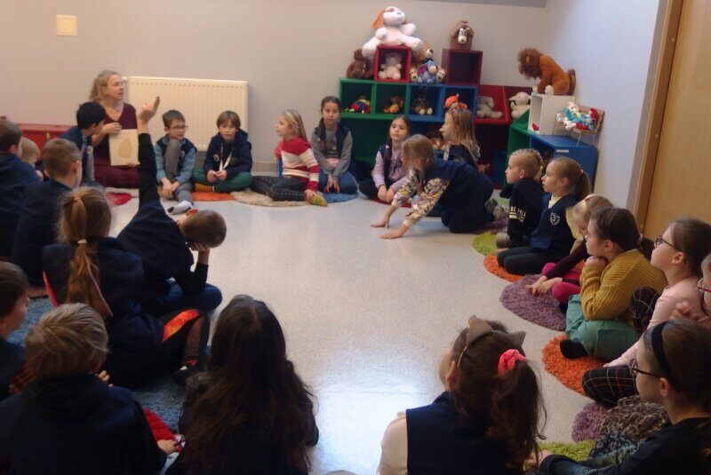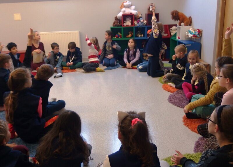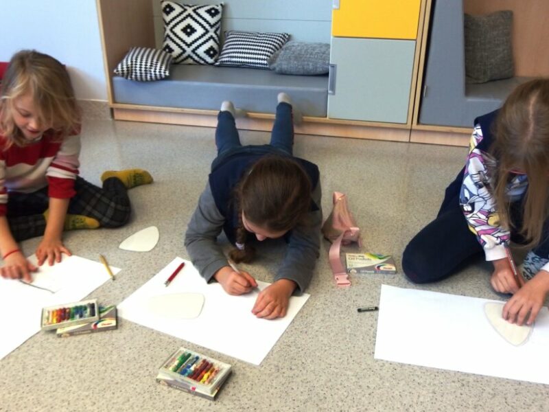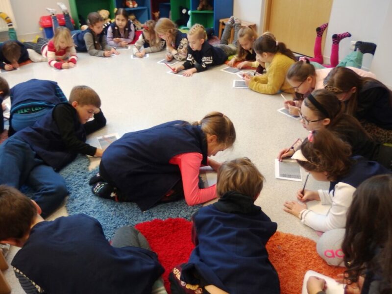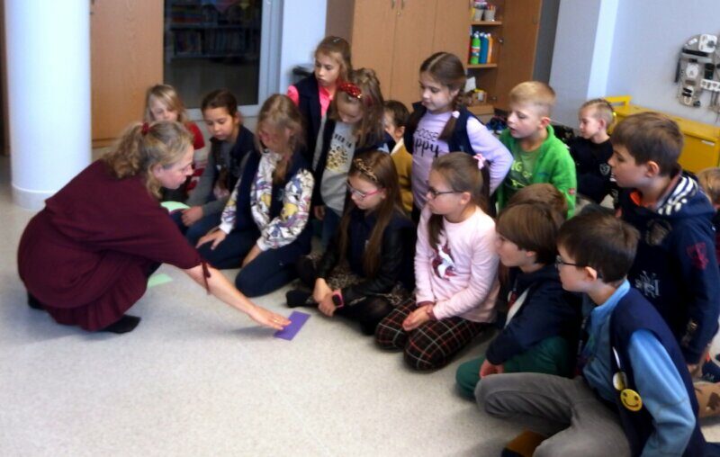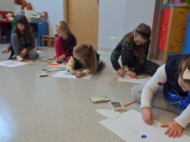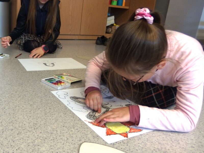 Zaprosiliśmy uczniów klasy II d ze Szkoły Podstawowej nr 2 w Jeleniej Górze na wędrówkę literacko-plastyczną śladami swoich przodków. Inspiracją do odbycia tej podróży stał się „Kłopot” Iwony Chmielewskiej. Poprzez wzajemne dopełnianie się słów i obrazów mogliśmy doświadczyć niezwykłej i pięknej prostoty świata, a zarazem jego złożoności. Rozmawialiśmy o wyjątkowych rodzinnych pamiątkach i o wyjątkowych relacjach. W drugiej części spotkania tworzyliśmy rodzinne ilustracje z wykorzystaniem szablonu, zaczerpniętego z książki.