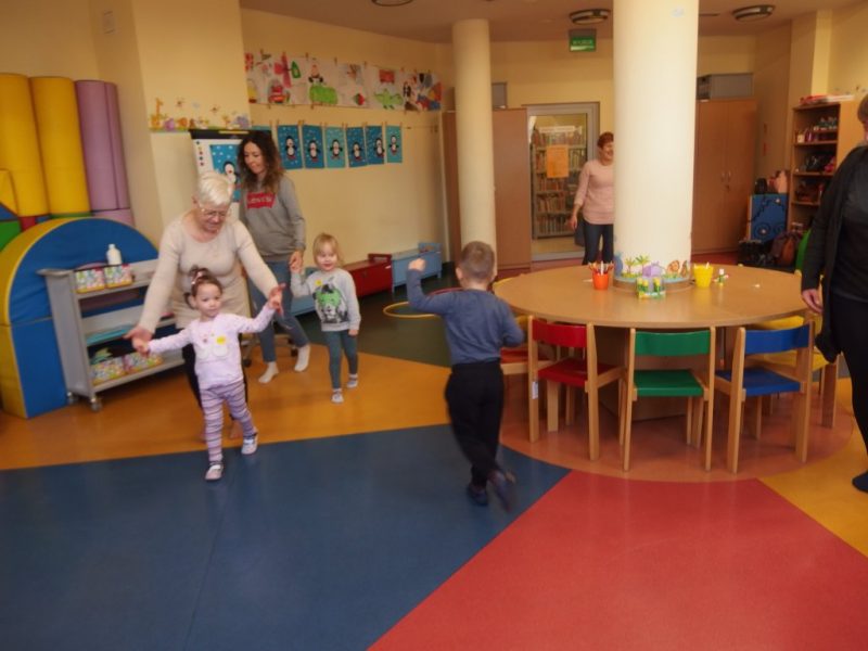 Na dzisiejszym spotkaniu Maluchy wraz z opiekunami wykleiły portret małego pingwinka Pip Pip oraz z plastikowych łyżek stworzyły jego „kukiełkę”. Dzieci zatańczyły z Pip Pipem pingwini taniec i naśladowały wesołe figle bezlotnych ptaków w morskiej toni.