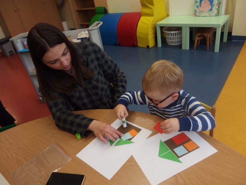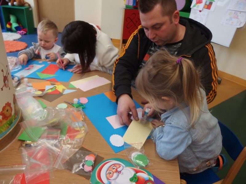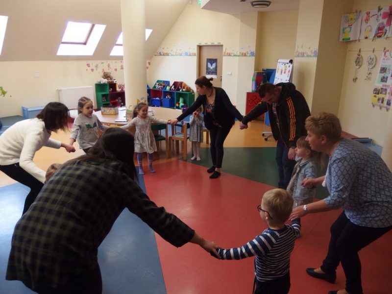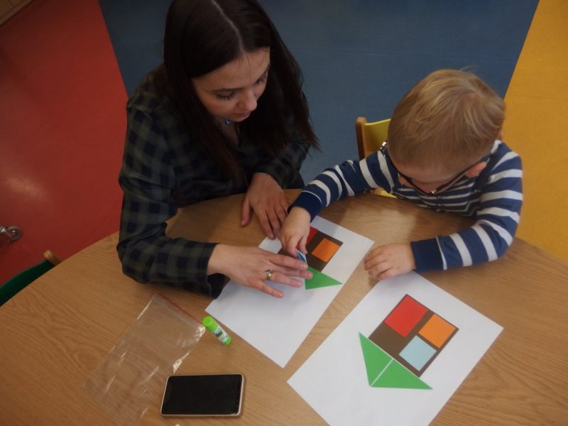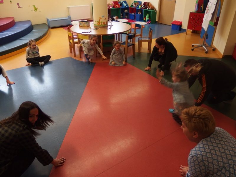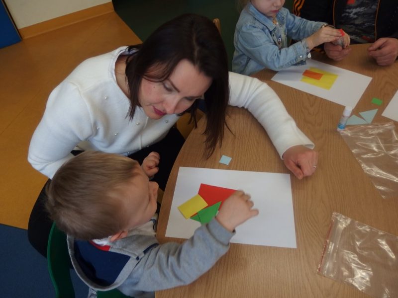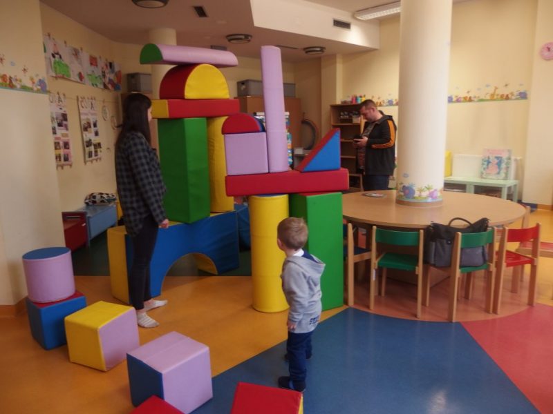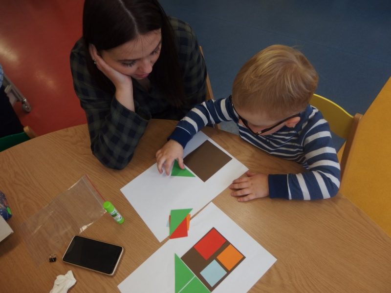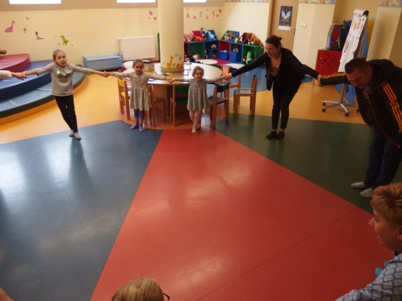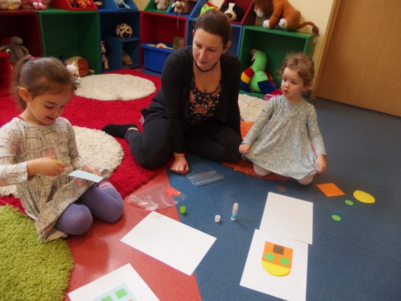 Na dzisiejszych zajęciach dzieci poznały historię trzech świnek i ich architektoniczne osiągnięcia, czyli domki z różnych materiałów budowlanych. Pierwsze zadanie zajęć plastycznych polegało na dokładnym odwzorowaniu murowanego domku dla trzech świnek. Następnie dzieci wcieliły się w małych architektów i zaprojektowały domy z kolorowych figur geometrycznych. Na koniec maluchy sprawdziły się w budowaniu zamków i tuneli z klocków piankowych.