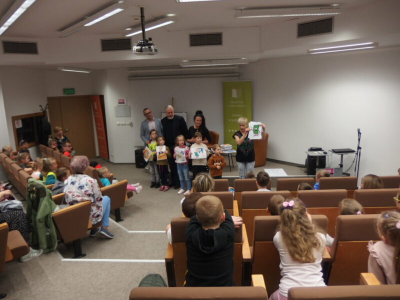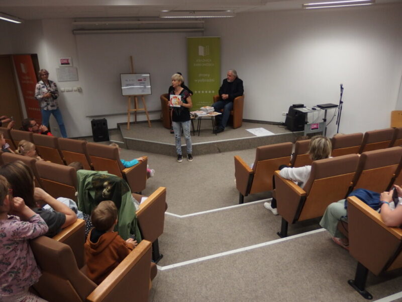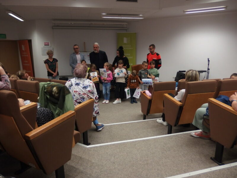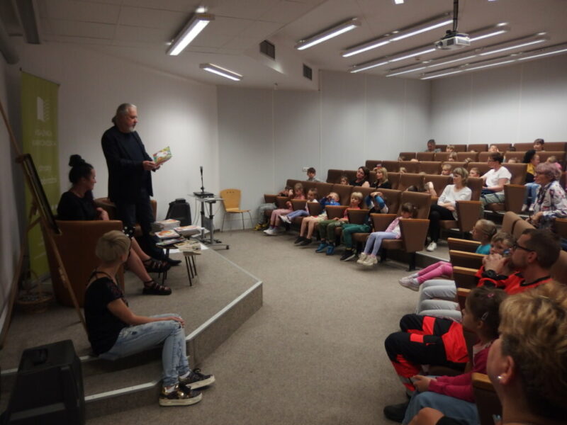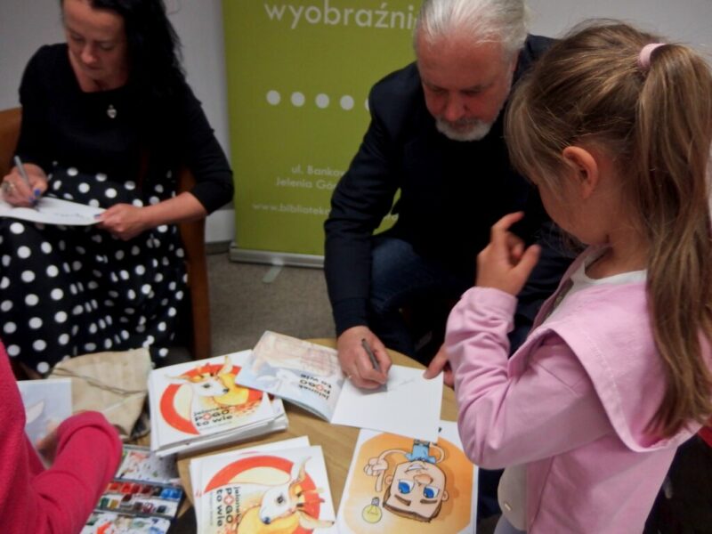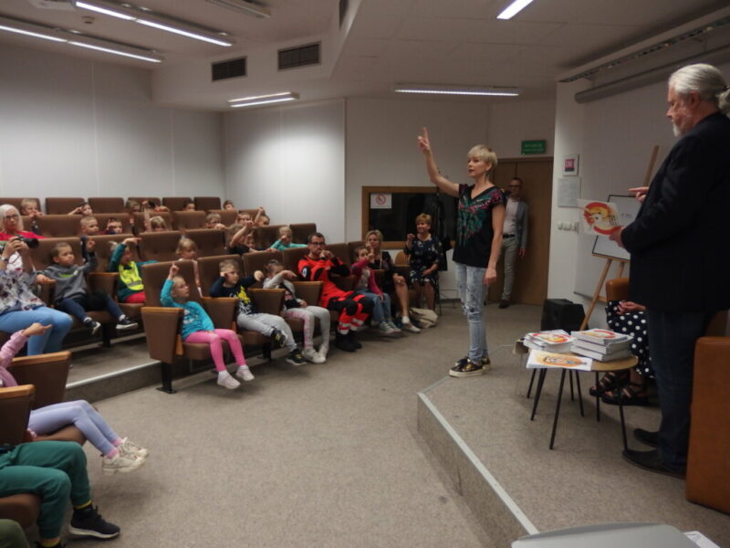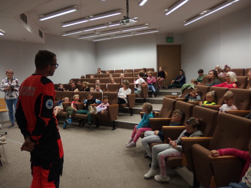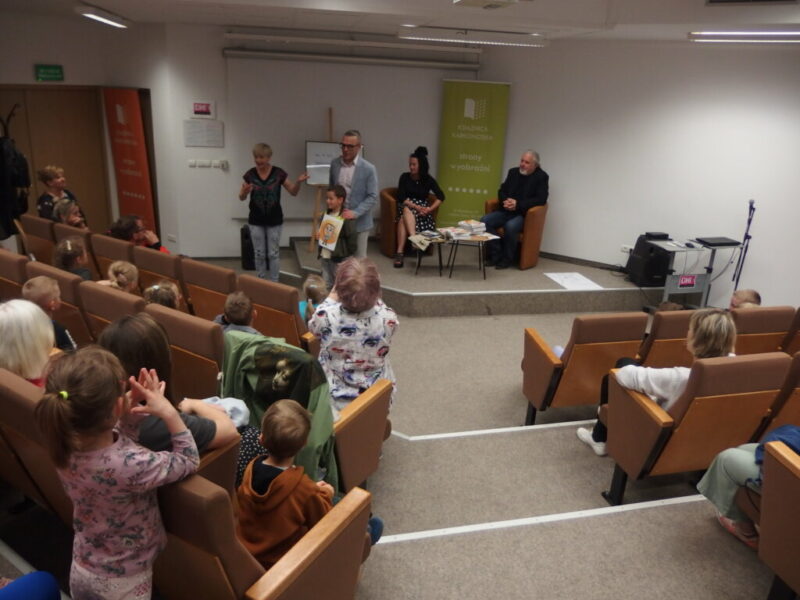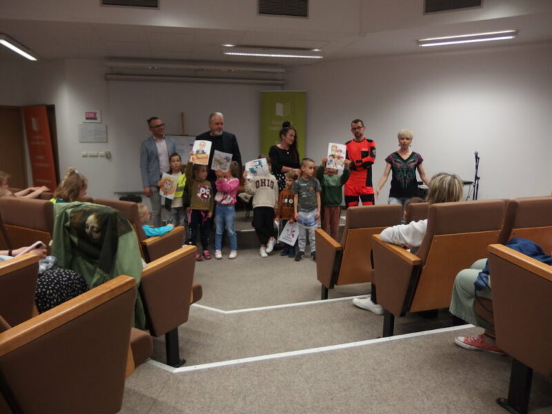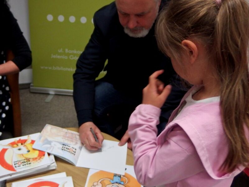 W Książnicy Karkonoskiej gościliśmy twórców i pomysłodawców książeczki dla dzieci pt. „Jelonek Pogo to wie”. Jest to opowieść o jelonku, który postanowił zostać ratownikiem. Książka powstała dzięki Fundacji Instytut Karkonoski, a na pomysł stworzenia edukacyjnej opowiastki dla najmłodszych, której bohaterem jest jelonek Pogo, wpadł pan Mariusz Gierus – dyrektor Pogotowia Ratunkowego w Jeleniej Górze. Przygotowaniem tekstu zajął się Grzegorz Nowicki, jeleniogórski poeta. Do współpracy przy tworzeniu książeczki zaproszono Agatę Makutynowicz, artystkę z Karpacza, która wykonała przepiękne akwarelowe ilustracje. W spotkaniu z młodą publicznością brał udział również ratownik medyczny, który opowiedział o tym, co zrobić, kiedy ktoś się źle poczuje, dlaczego tak znacząca jest pierwsza pomoc oraz przypomniał dzieciom ważne numery alarmowe.