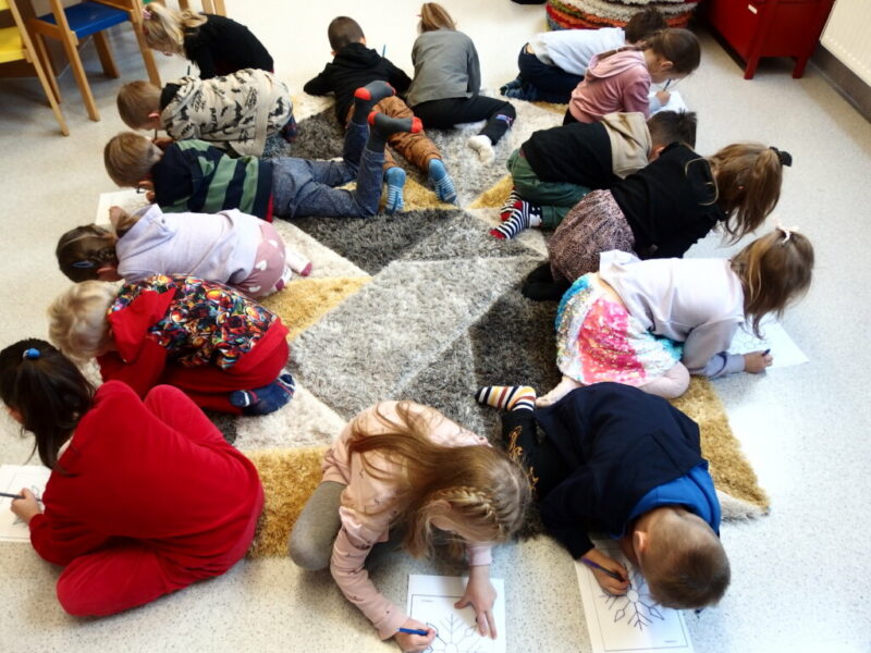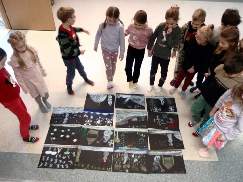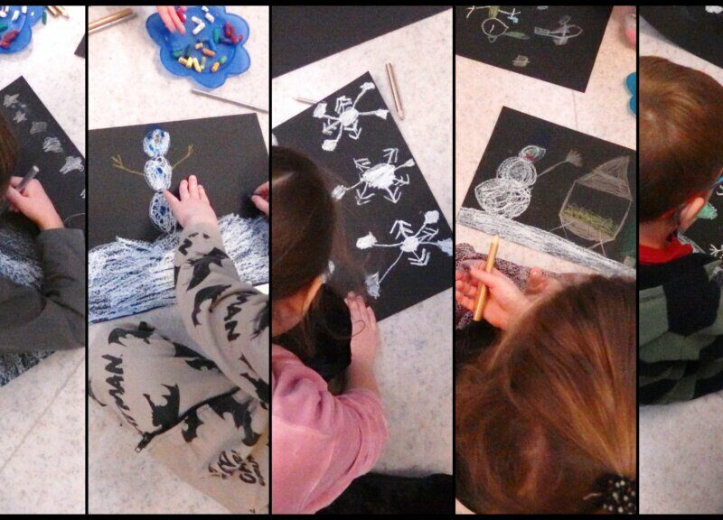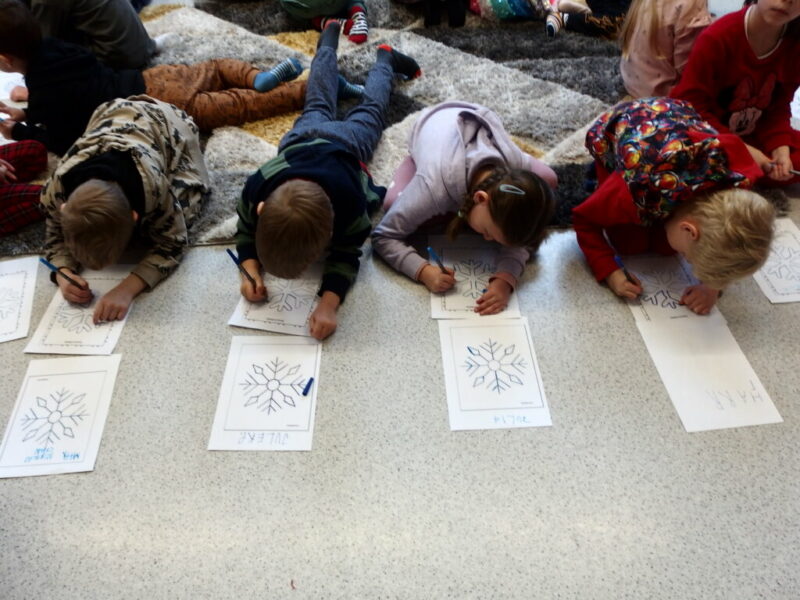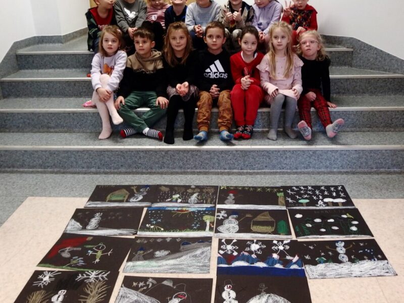 Razem z przedszkolakami z grupy Koty z Niepublicznego Przedszkola Piątka5 w Jeleniej Górze rozmawialiśmy o zimie i przyglądaliśmy się zimowym krajobrazom ukształtowanym siłą natury oraz działalnością człowieka.  Rysowaliśmy po śladzie piękne śnieżynki , a na zakończenie stworzyliśmy własne zimowe krajobrazy.
