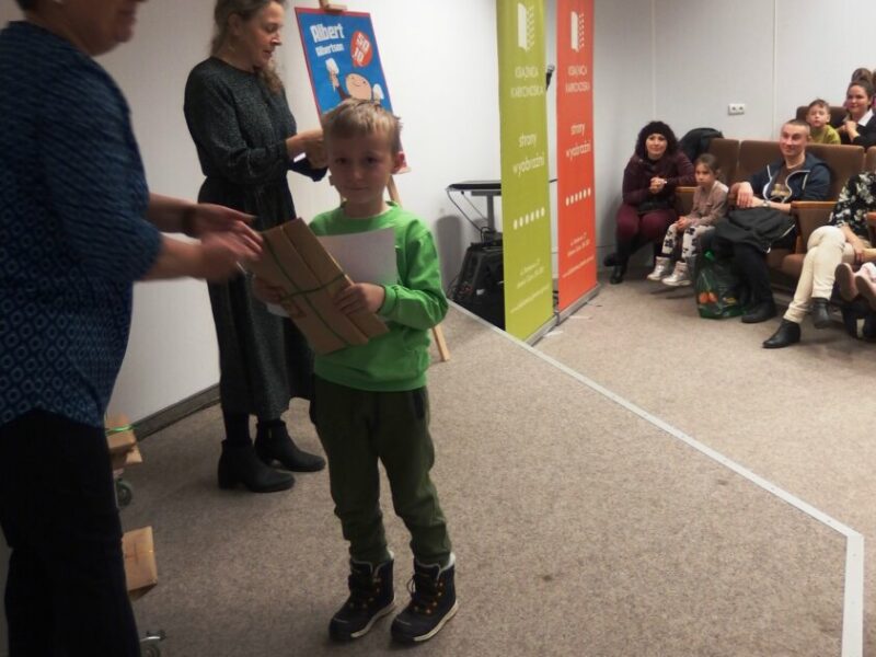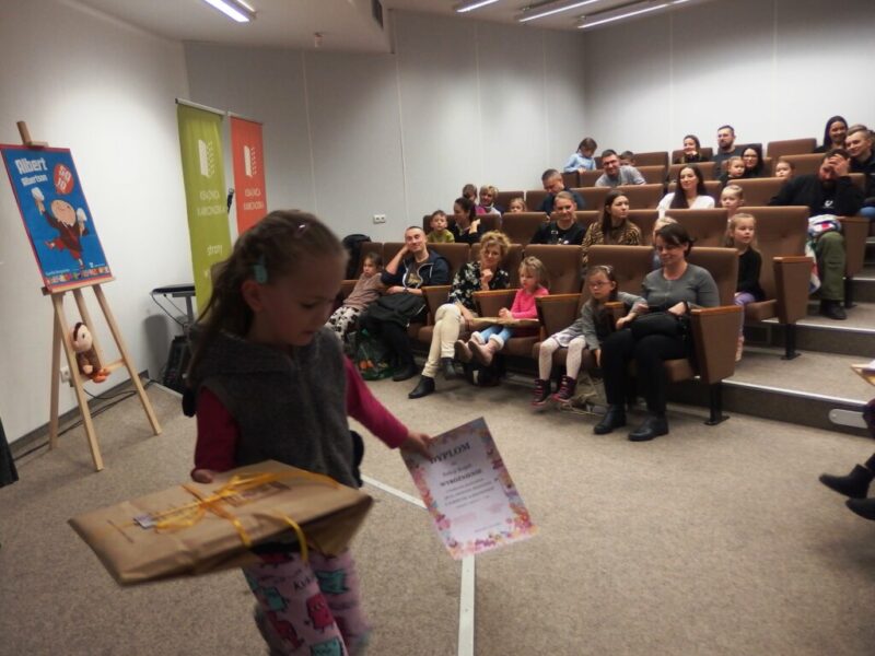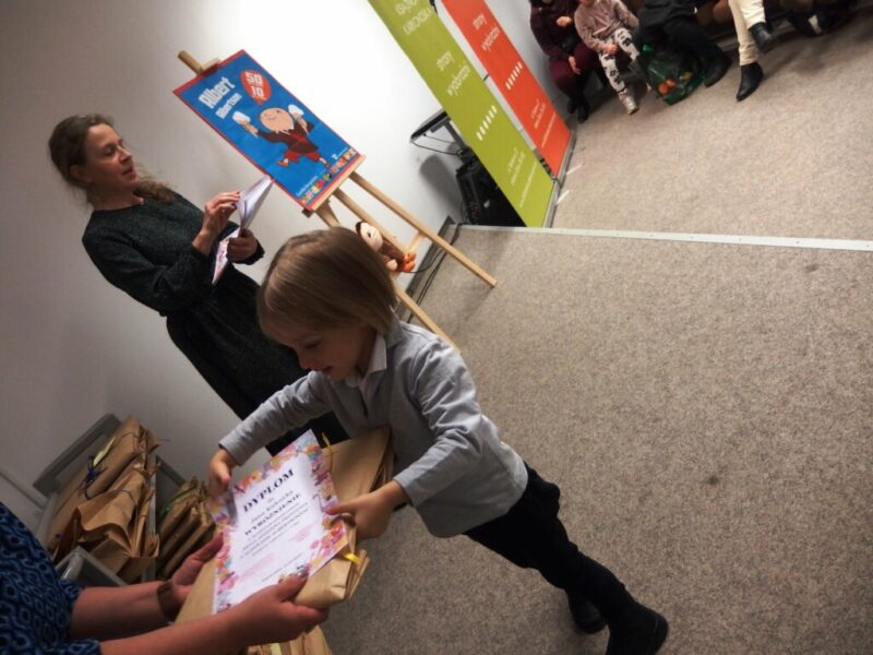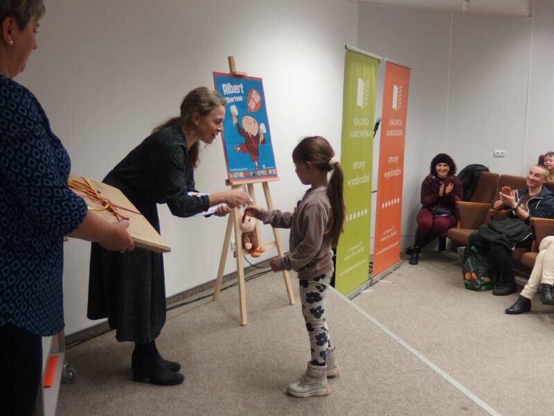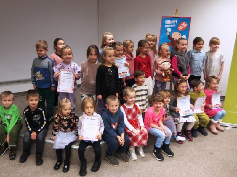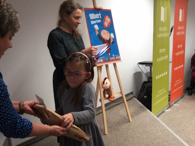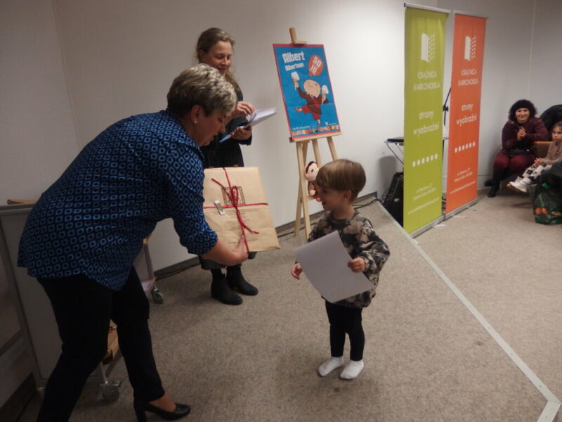 Tegoroczne targi książki regionalnej „Książka pod choinkę z dedykacją” przyniosły również wiele emocji naszym najmłodszym Czytelnikom. Podczas tego wydarzenia poznaliśmy laureatów konkursu plastycznego „Moja jesienna przygoda z Albertem Albertsonem”, wręczyliśmy młodym artystom  nagrody i wyróżnienia, podziwialiśmy nagrodzone prace na wernisażu, kosztując słodkie przysmaki. Tym samym oficjalnie zakończyliśmy nasz projekt LISTOPAD Z ALBERTEM, w którym mogliśmy poznać bliżej bohatera nietuzinkowej szwedzkiej serii autorstwa Gunilli Bergstrom – dzięki wystawie Wydawnictwa Zakamarki „Niech żyje Albert Albertson!”oraz specjalnie przygotowanym na tę okoliczność zajęć literacko-plastycznych dla grup przedszkoli jeleniogórskich.
