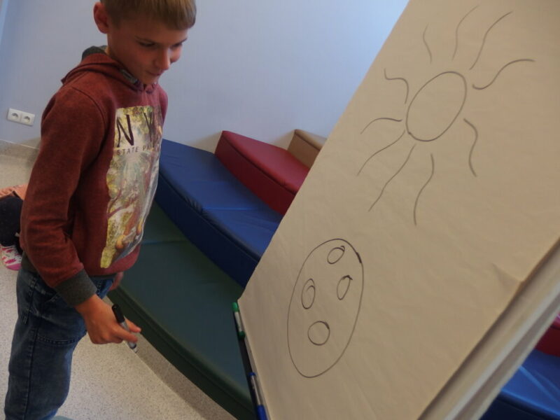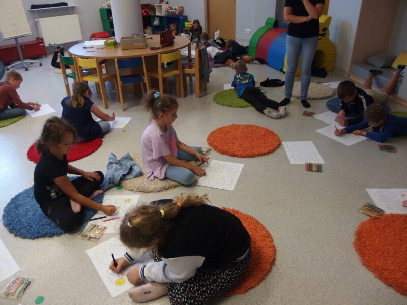 15 września obchodzimy Międzynarodowy Dzień Kropki, który został ustanowiony w 2008r. Inspiracją do stworzenia tego święta była książka dla dzieci autorstwa Petera H. Reynoldsa pt. „The Dot” (Kropka). W Polsce dzień ten jest świętem kreatywności, zabawy i odwagi. W Bibliotece Dziecięco-Młodzieżowej świętowaliśmy ten dzień wraz z drugoklasistami ze Szkoły Podstawowej nr 2 w Jeleniej Górze. Na początku zajęć przypomnieliśmy sobie historię małej dziewczynki, która dzięki malutkiej kropce i pani od plastyki poznała i przede wszystkim uwierzyła w swój talent. Zwykła mała kropka wycięta z papieru zainspirowała uczniów do eksperymentowania z rysowaniem, rozwinęła w nich kreatywność i pobudziła wyobraźnię. Dzięki niej dzisiaj każdy był ARTYSTĄ!!!