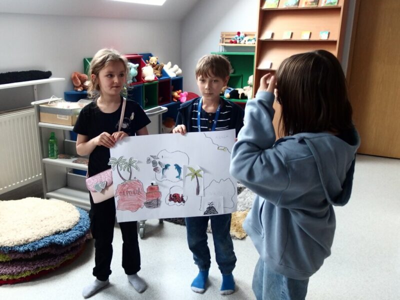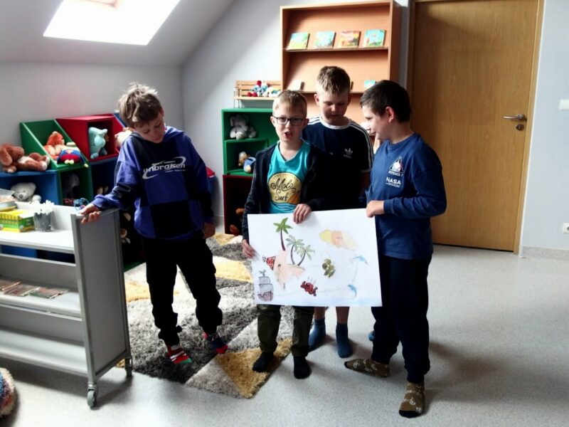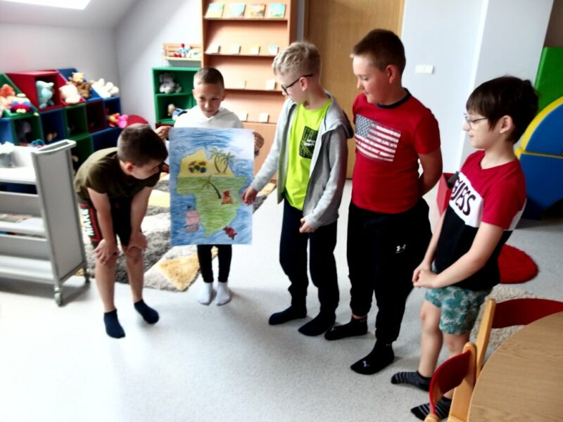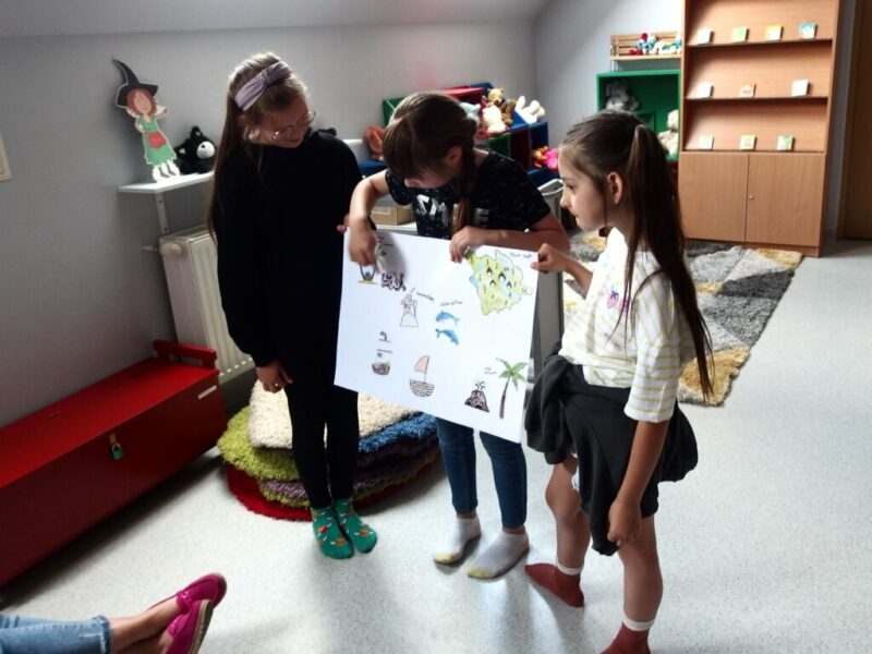 Skoro blisko już weekend wybraliśmy się z uczniami klasy III e ze Szkoły Podstawowej nr 2 w Jeleniej Górze na pełną przygód wyprawę. Przed zdobywaniem mórz i oceanów zastanawialiśmy się wspólnie, co charakteryzuje powieści przygodowe. Obejrzeliśmy kilka książek z tego gatunku, a uczniowie wymienili tytuły tych, po które sięgnęli już wcześniej. Przed wyruszeniem w drogę przyjrzeliśmy się uważnie kilku obrazkowym atlasom, by wreszcie wyruszyć w grupach na nieznane wody. Pięć podróżniczych drużyn – „Getzi”, „Sigmy”, „Podróżnicy”, „Kokosy” i „Team Indie”, rozwiązało kilka tajemnic i odbyło dalekie wyprawy, których trasy możecie prześledzić na prezentowanych przez nich mapach.
