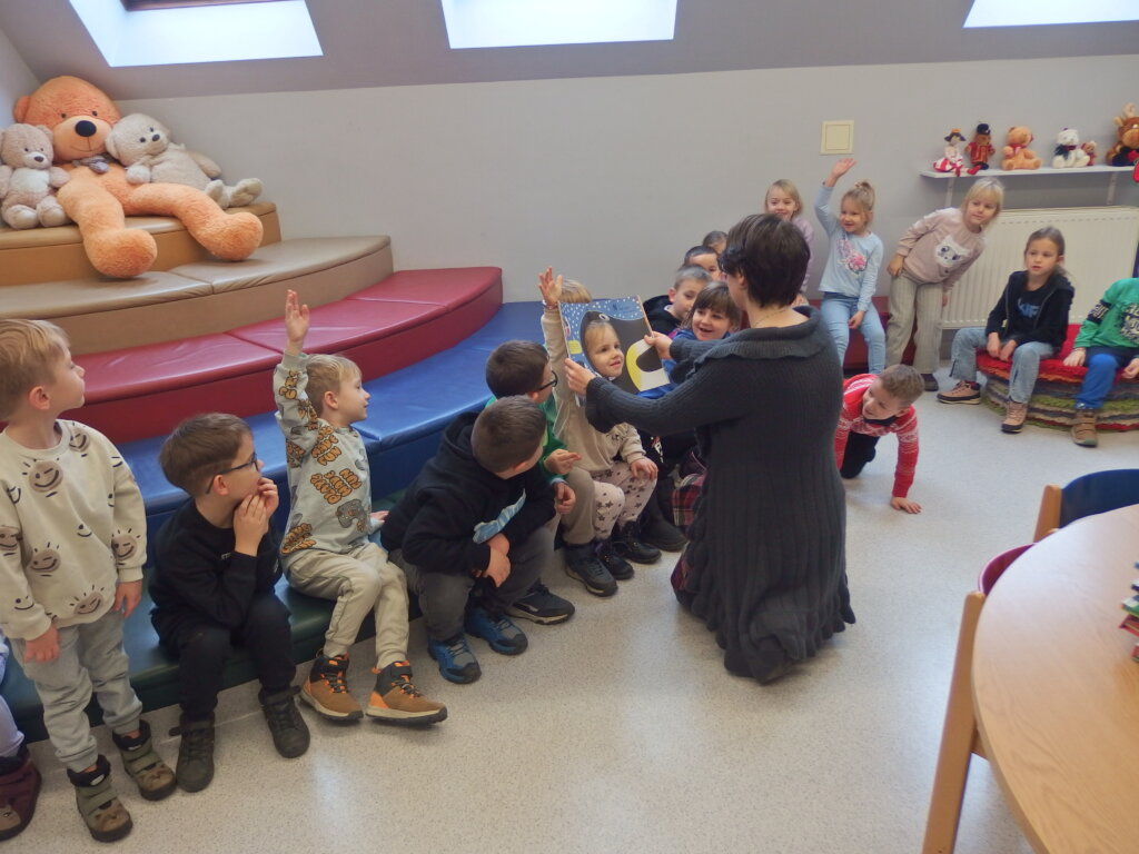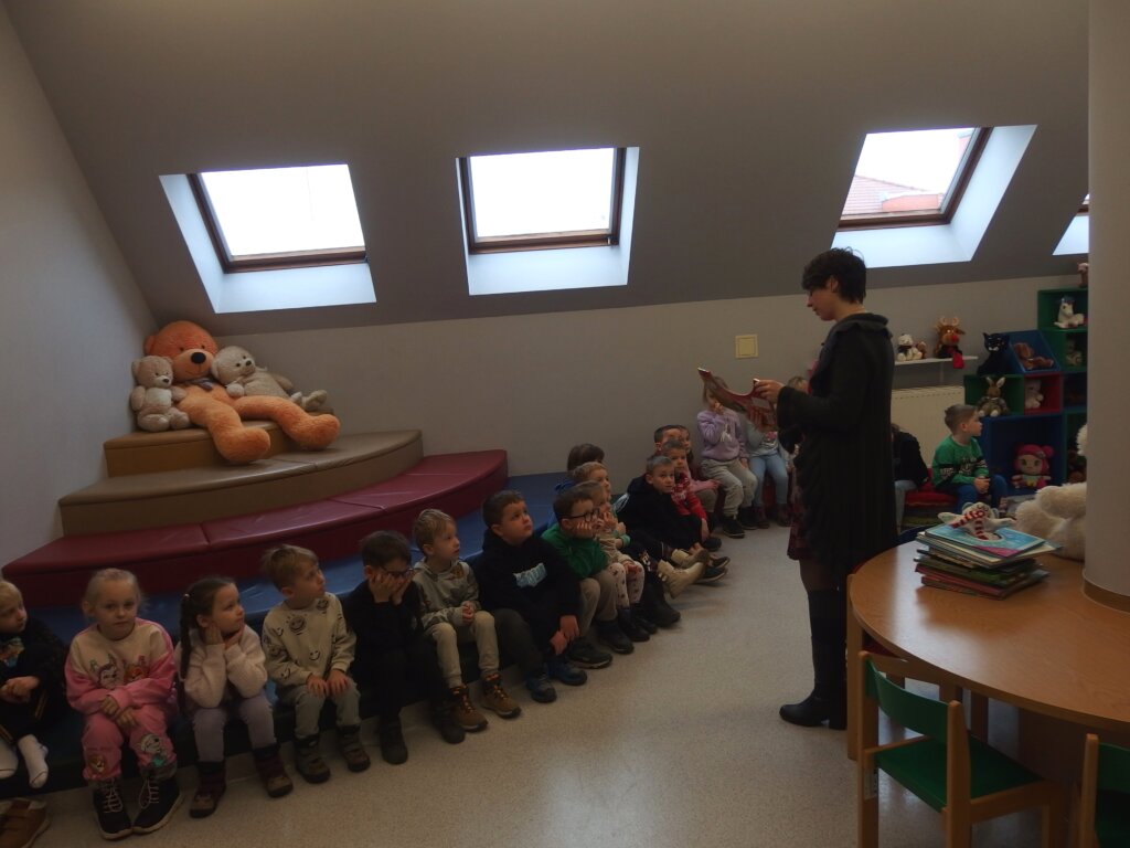 W ten wtorek Bibliotekę Dziecięco-Młodzieżową odwiedziła grupa 6-latków z Przedszkola Publicznego w Jeżowie Sudeckim. „Motyle” przyszły, żeby dowiedzieć się, jak założyć kartę biblioteczną i otrzymać wyprawkę z akcji „Mała książka – wielki człowiek”, jak poruszać się po bibliotece, by znaleźć poszukiwany tytuł oraz jakie są zasady korzystania z naszych czytelni. Ku naszej radości okazało się, że wielu z jeżowskich przedszkolaków jest już naszymi czytelnikami.