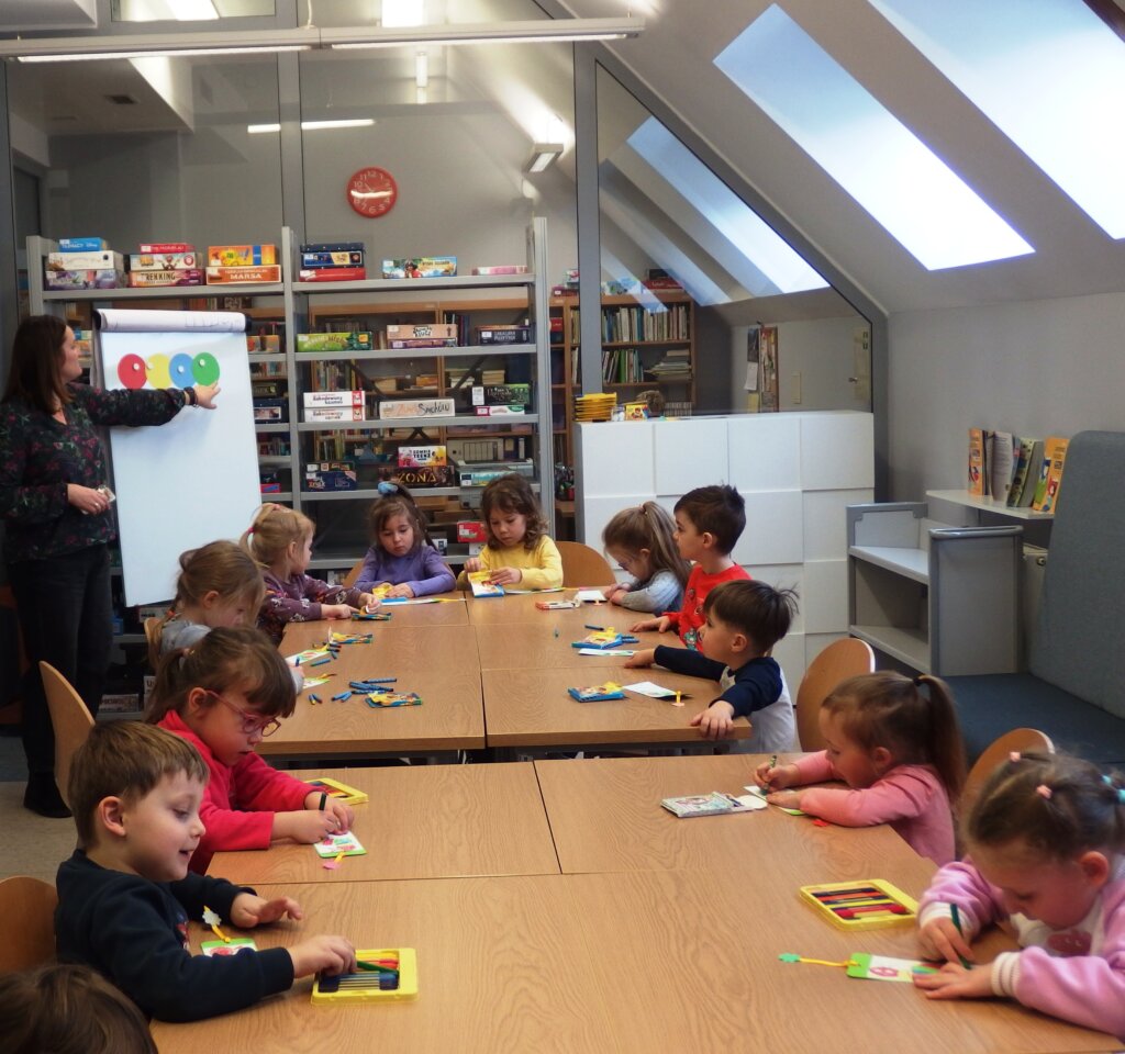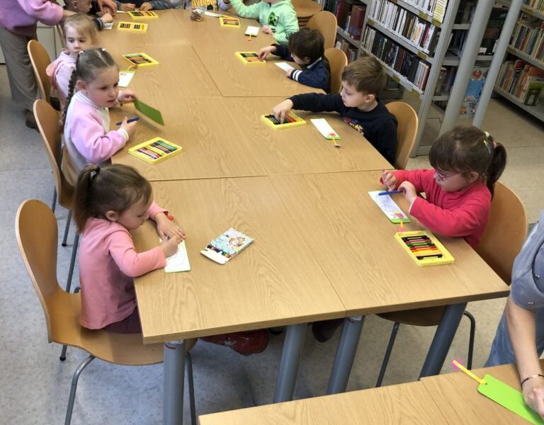 Bibliotekę Dziecięco-Młodzieżową odwiedziły czterolatki z Miejskiego Przedszkola nr 2 w Jeleniej Górze. Przedszkolaki dowiedziały się jak zostać czytelnikiem biblioteki i jakie książki mogą wypożyczać do domu. Podczas zajęć wysłuchały opowiadania Eric’a Carle’a o bardzo głodnej gąsienicy i wykonały kolorowe zakładki do książek.