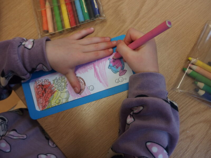 Przedszkolaki wyszły od nas z praktycznymi pamiątkami – samodzielnie pokolorowanymi zakładkami do książek.