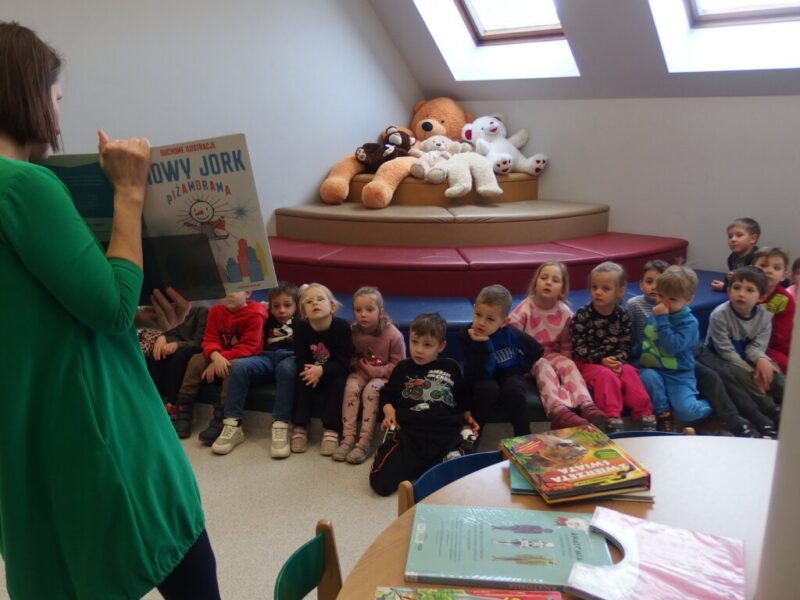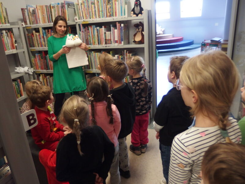 Pszczółki w bibliotece? Oczywiście! Grupa 5-latków z Miejskiego Przedszkola nr 4 w Jeleniej Górze odwiedziła bibliotekę. Dzieci zapoznały się z zasadami zapisu i otrzymania karty bibliotecznej. Pszczółki dowiedziały się również o programie Instytutu Książki – Mała Książka Wielki Człowiek.