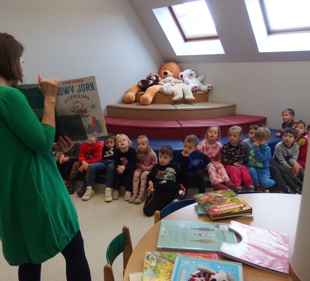 Pszczółki w bibliotece? Oczywiście! Grupa 5-latków z Miejskiego Przedszkola nr 4 w Jeleniej Górze odwiedziła bibliotekę. Dzieci zapoznały się z zasadami zapisu i otrzymania karty bibliotecznej. Pszczółki dowiedziały się również o programie Instytutu Książki – Mała Książka Wielki Człowiek.