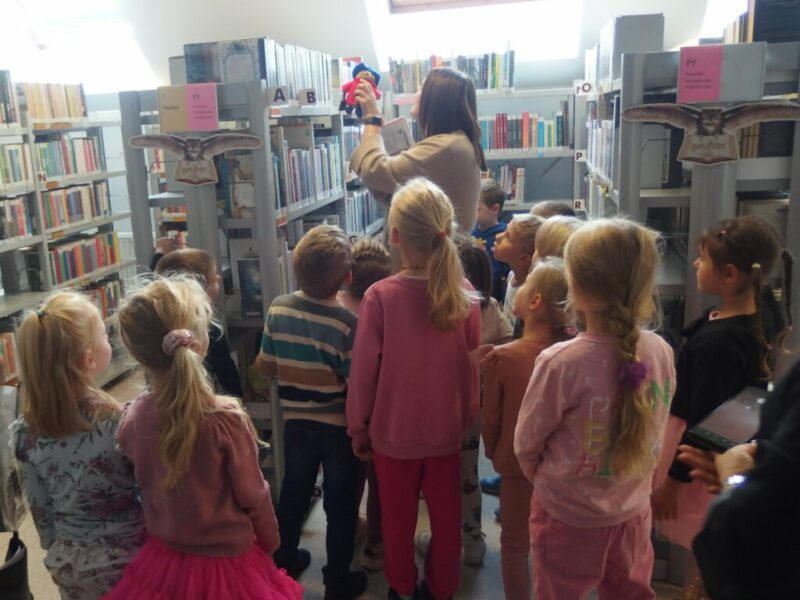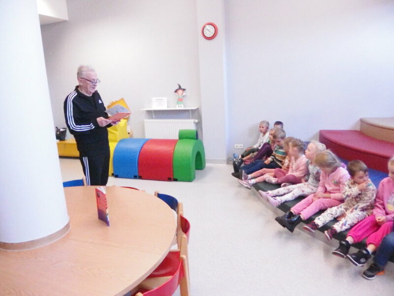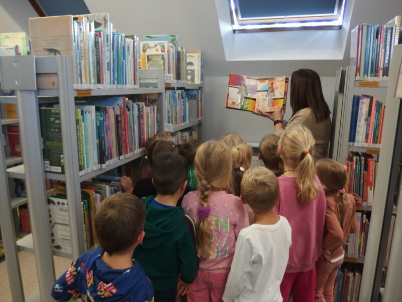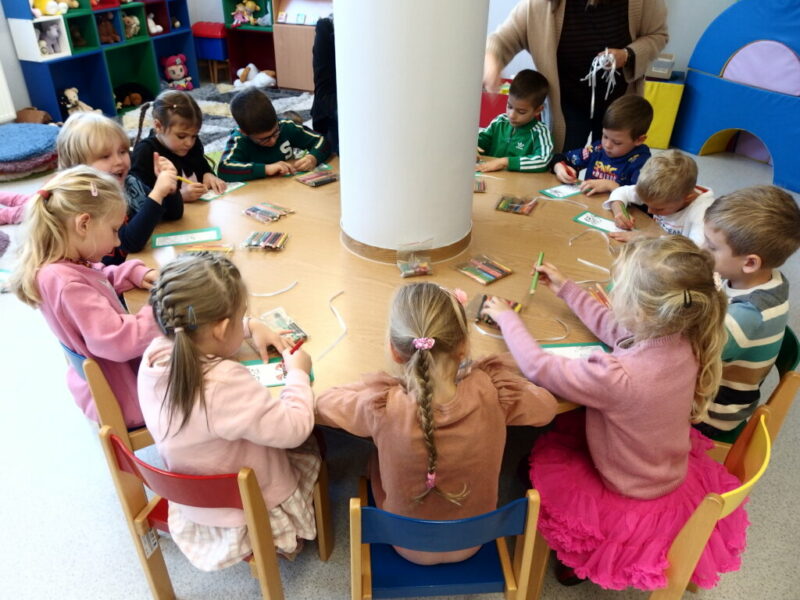 Naszymi gośćmi były dzieci z Miejskiego Przedszkola nr 10 w Jeleniej Górze. Przedszkolaki dowiedziały się, jak założyć konto czytelnicze oraz w jaki sposób korzystać z naszych zbiorów. W tym dniu dzieci miały okazję spotkać w naszej bibliotece Kawalera Orderu Uśmiechu Pana Ryszarda Kiełka, który z wielką radością przeczytał dzieciom „Lokomotywę” J. Tuwima. Na zakończenie spotkania przedszkolaki wykonały zakładki do swoich ulubionych książek, pochwaliły się swoimi pracami i zrobiły wspólne zdjęcie z dyrektorem Książnicy Karkonoskiej Panem Piotrem Iwańcem.