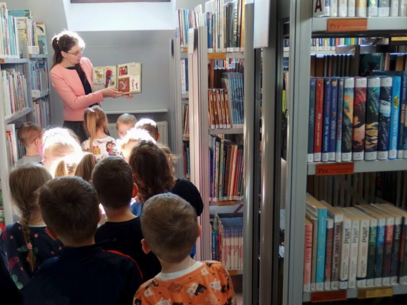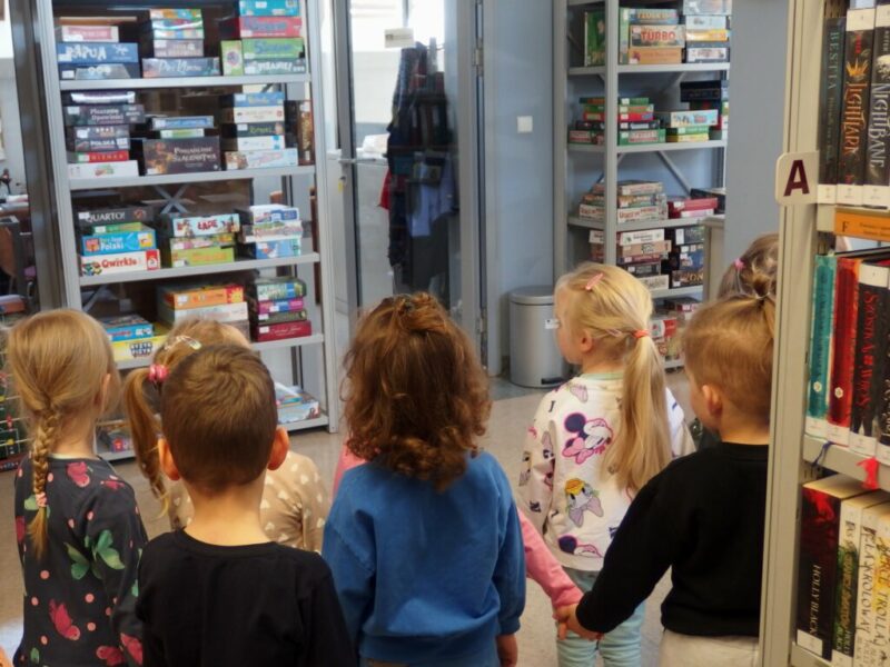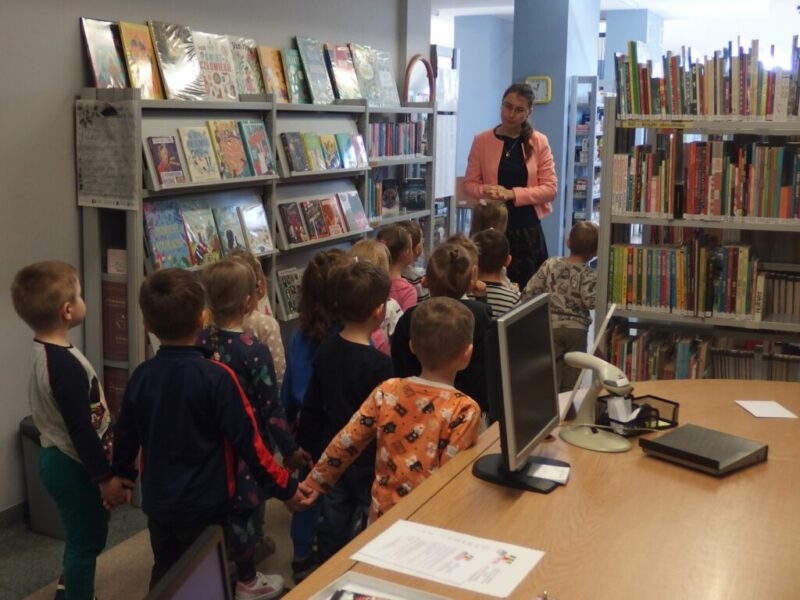 W piękny i wiosenny piątek zawitała do nas grupa – „Biedronek” z Miejskiego Przedszkola nr 27 „Okrąglaczek”. Dzieci przyszły zapoznać się z bibliotecznymi zbiorami, obejrzeć nasze czytelnie i dowiedzieć się, jak można założyć u nas kartę biblioteczną. Przeszliśmy wspólnie między regałami, dowiadując się, gdzie można znaleźć książki z danego tematu. Przy tym przedszkolaki odkryły, że do wypożyczenia mamy również całe mnóstwo gier planszowych.