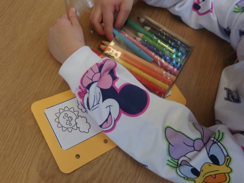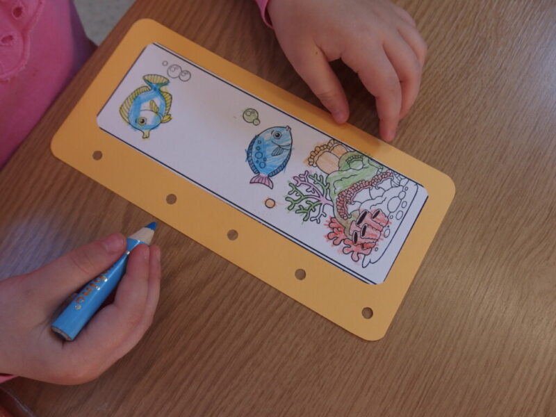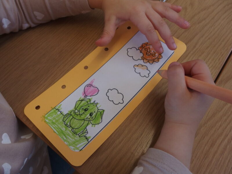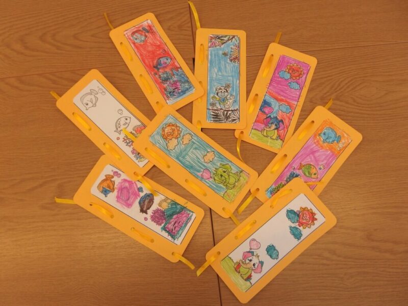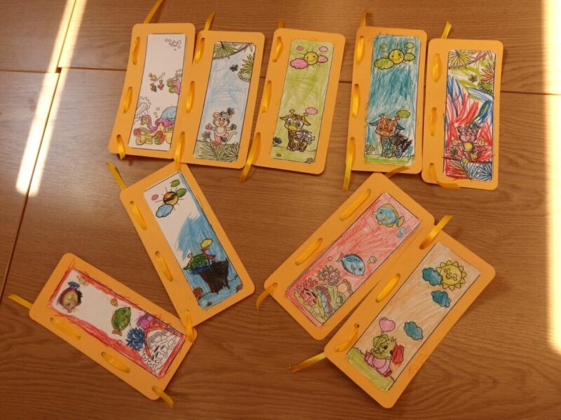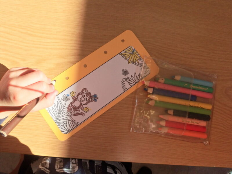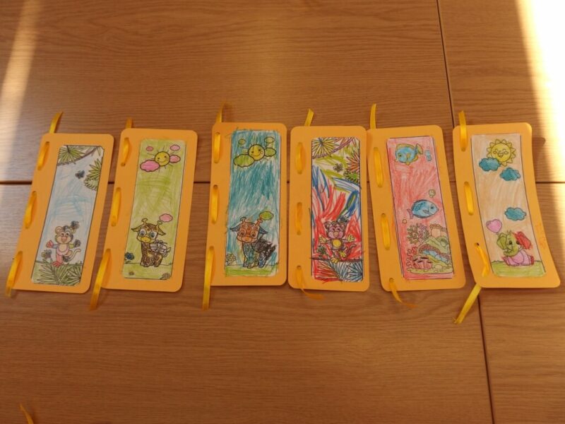 Po zrobieniu pamiątkowych zakładek, obejrzeliśmy dokładniej kilka co ciekawszych tomów z księgozbioru podręcznego (do wypożyczania na miejscu). A później zostało nieco czasu na zabawę w naszej czytelni dla najmłodszych.