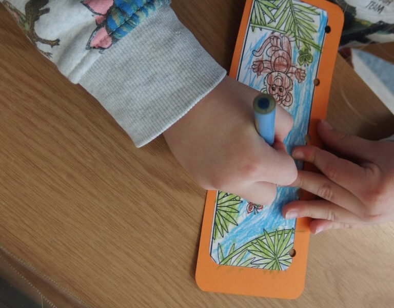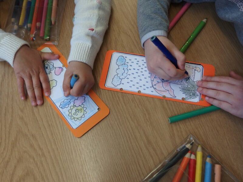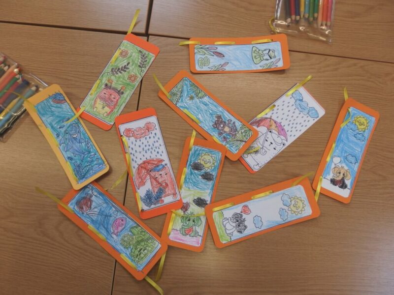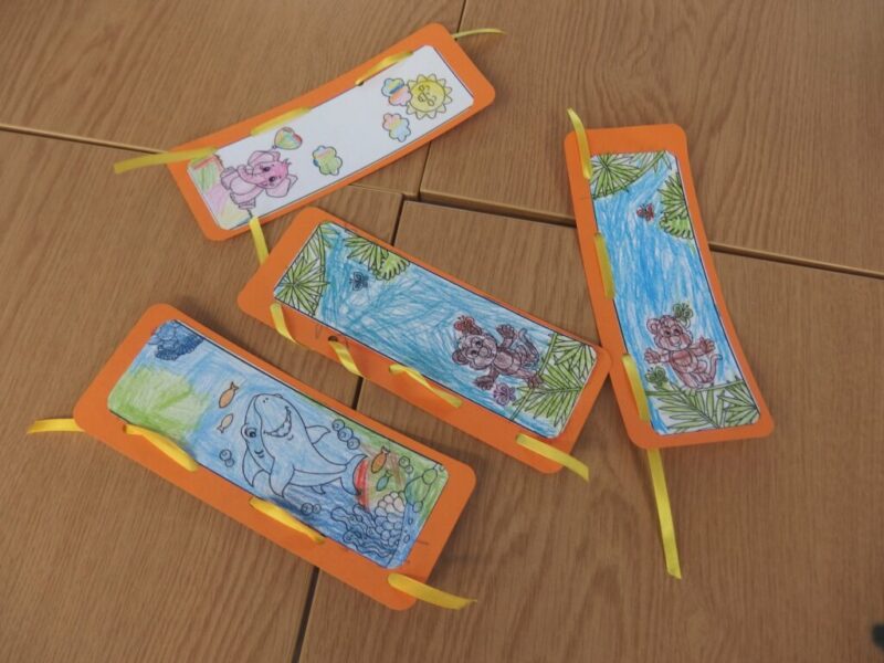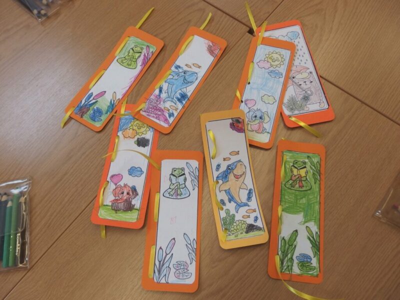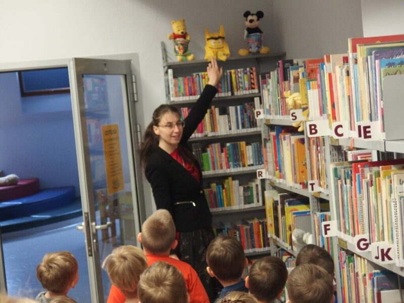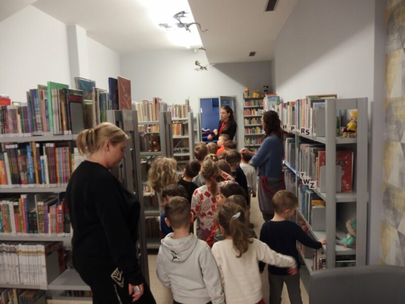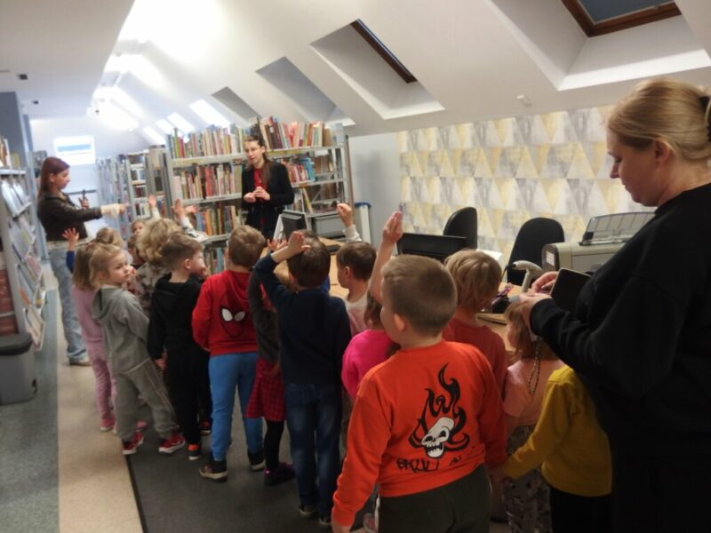 „Krasnoludki” z Miejskiego Przedszkola nr 27 „Okrąglaczek” przyszły dziś zapoznać się z naszymi bibliotecznymi zbiorami, obejrzeć nasze czytelnie i dowiedzieć się, w jaki sposób można u nas wypożyczyć książkę lub grę planszową. Część grupy okazała się naszymi czytelnikami, więc skupiliśmy się na lepszym poznaniu układu Biblioteki Dziecięco-Młodzieżowej. Największą uwagą cieszyły się książki podróżnicze i podręczniki o grze Minecraft. Wspólnie przeszliśmy między regałami i obejrzeliśmy obie czytelnie, by w jednej z nich wykonać pamiątkowe zakładki do książek. Przy czym zostało i trochę czasu na zabawę w naszej czytelni dla najmłodszych.