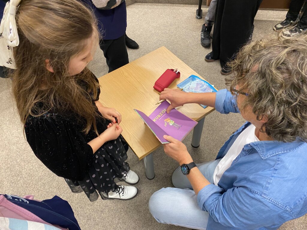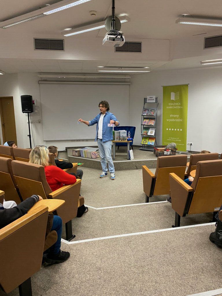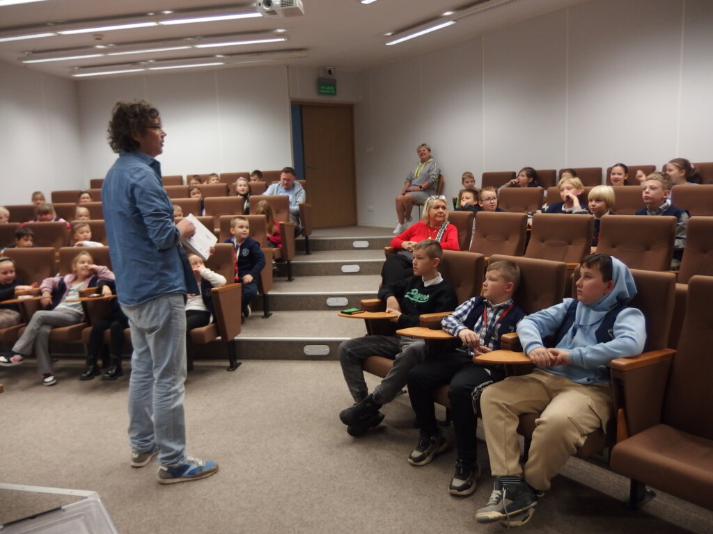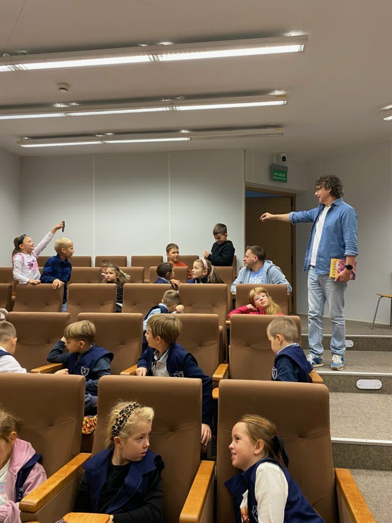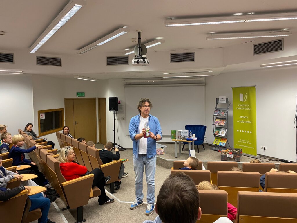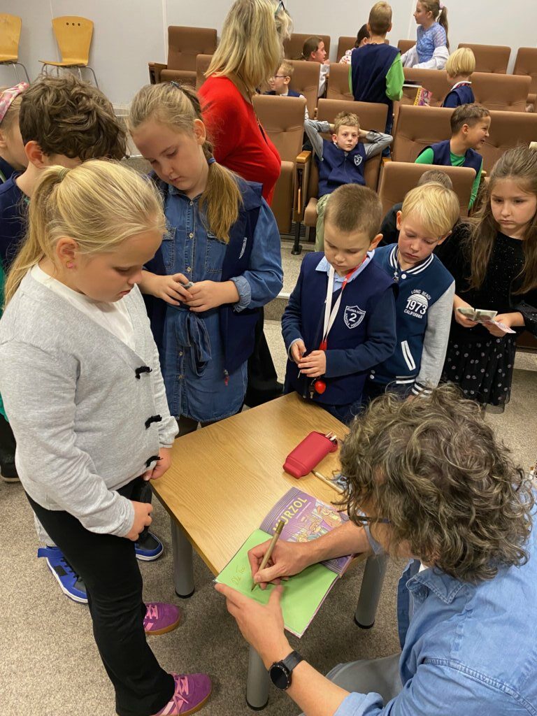 Był czas na odsłuchanie fragmentu opowiadania o Kurzolu oraz na oglądanie makiety jego domu. Można było porozmawiać z autorem, zadać wiele trudnych pytań, kupić jego książkę i otrzymać autograf. Spotkanie było nie tylko lekcją literatury, ale także niezwykłą podróżą w głąb ludzkiego ciała, która na długo pozostanie w pamięci dzieci.