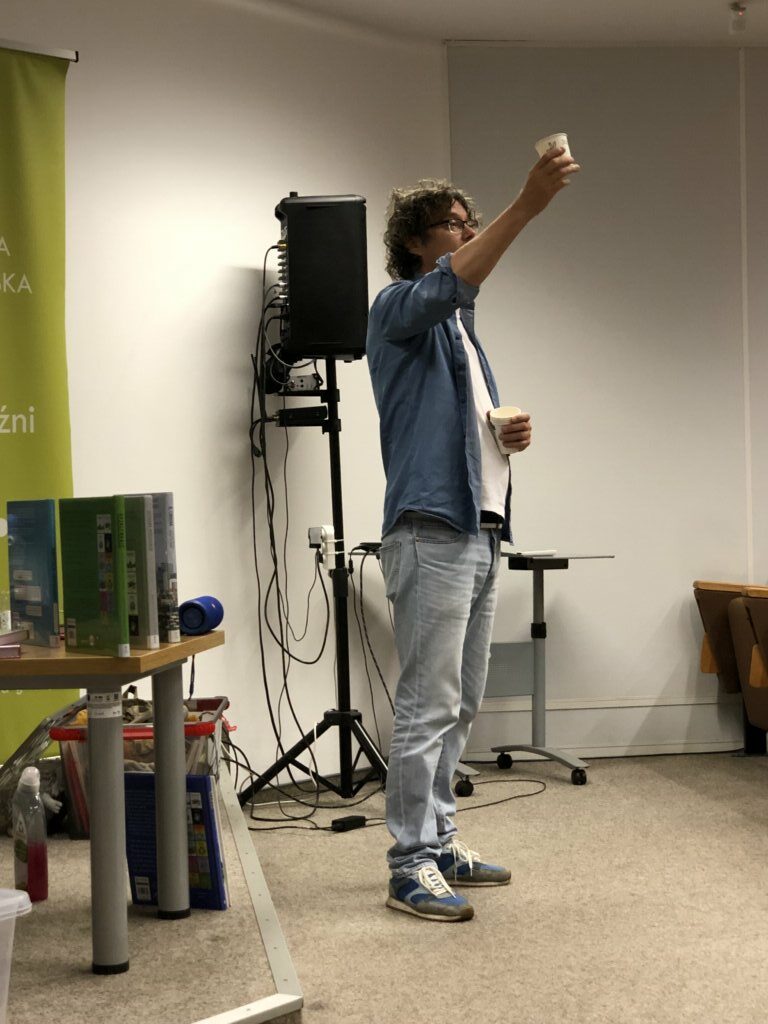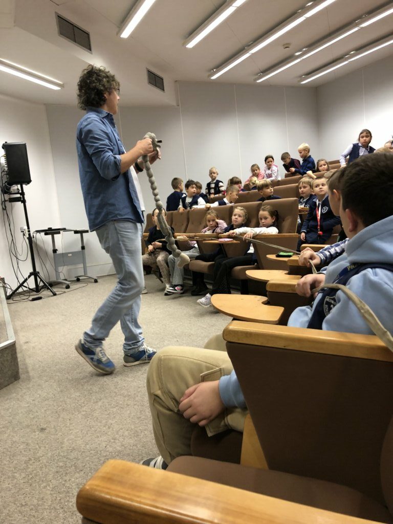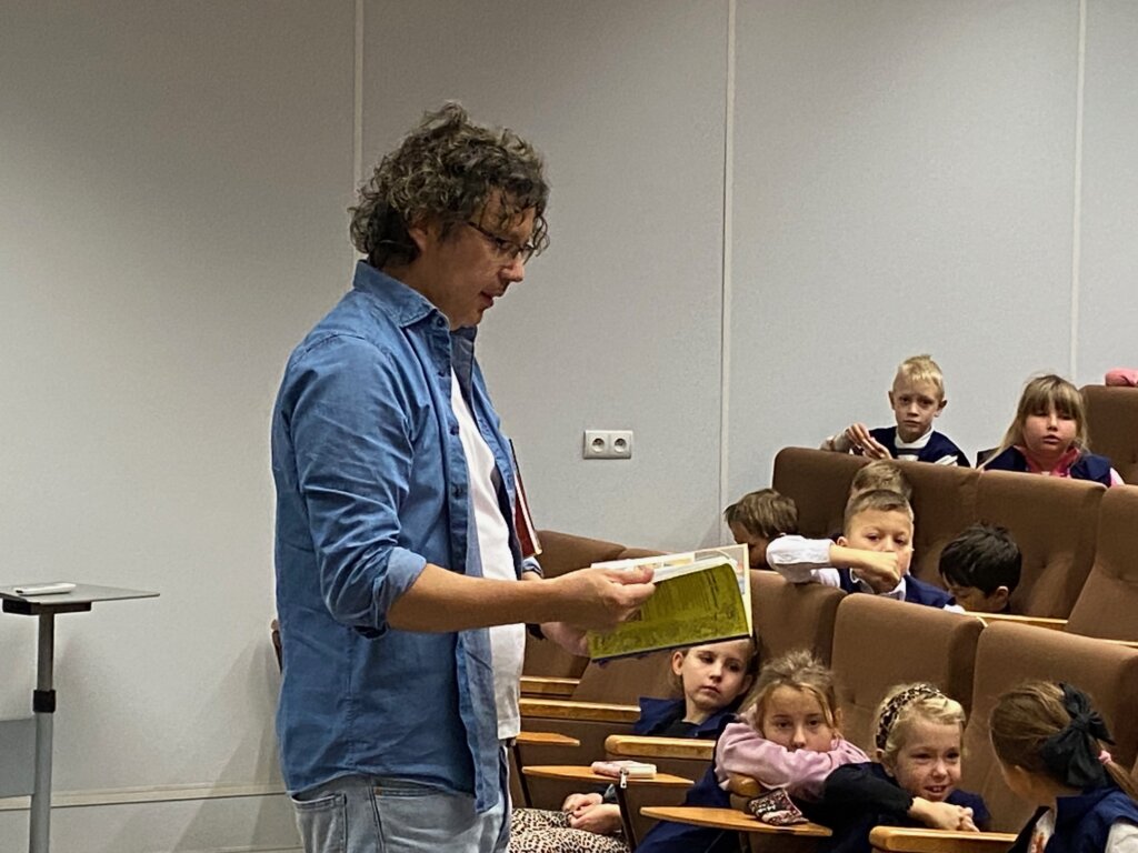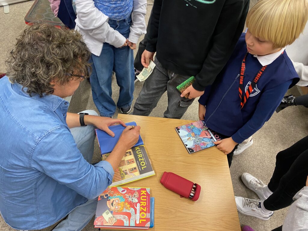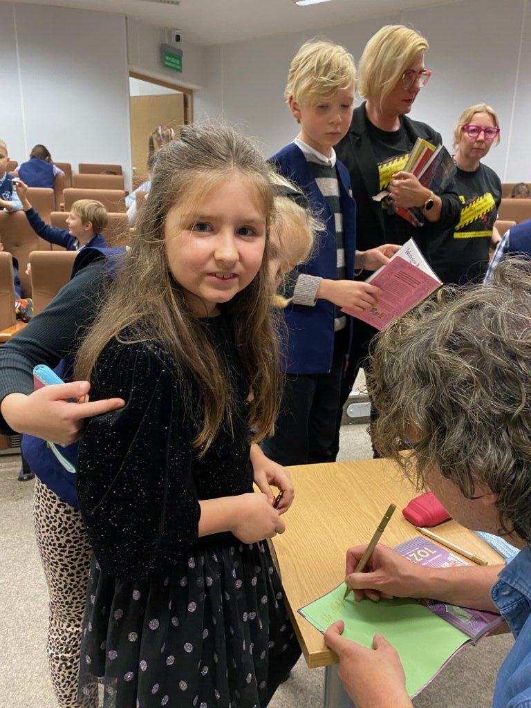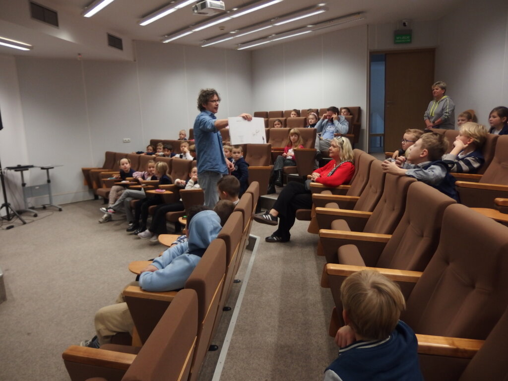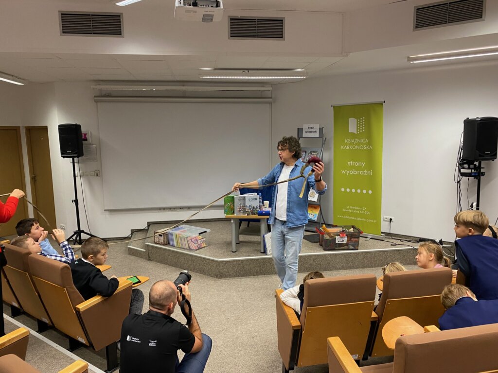 Był czas na odsłuchanie fragmentu opowiadania o Kurzolu oraz na oglądanie makiety jego domu. Można było porozmawiać z autorem, zadać wiele trudnych pytań, kupić jego książkę i otrzymać autograf. Spotkanie było nie tylko lekcją literatury, ale także niezwykłą podróżą w głąb ludzkiego ciała, która na długo pozostanie w pamięci dzieci.