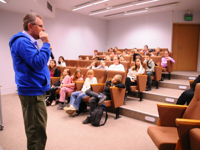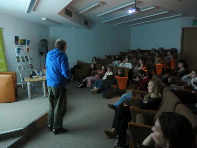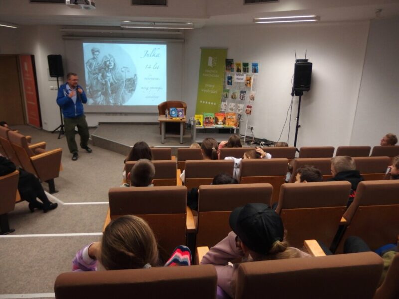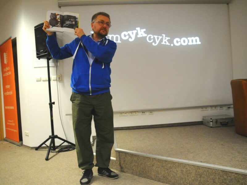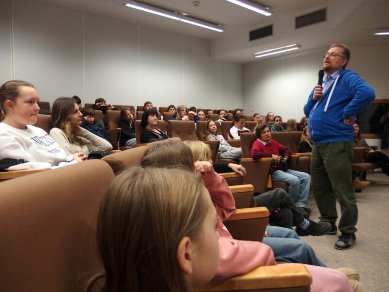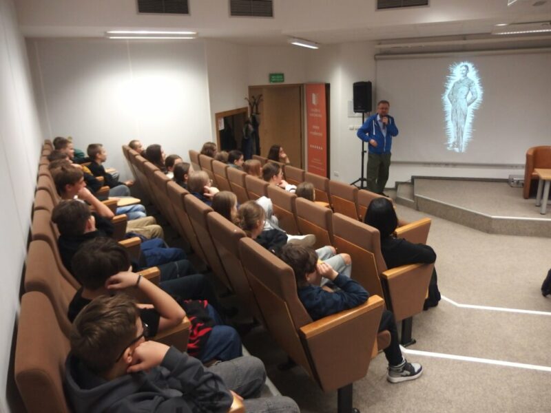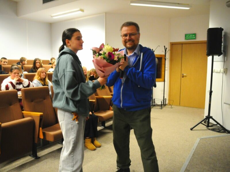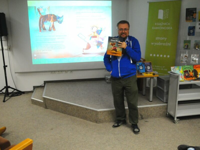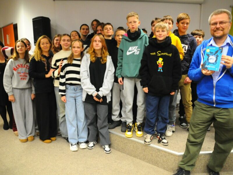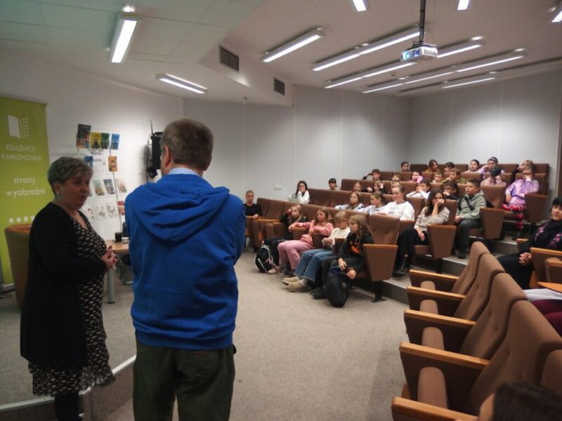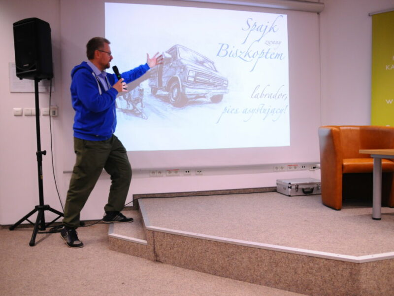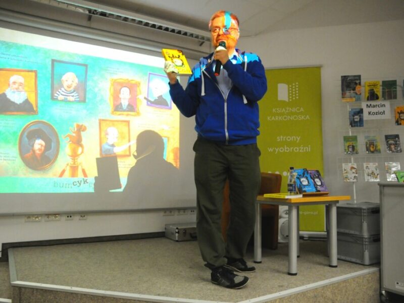 Te i wiele innych ciekawostek mogliśmy dziś poznać, dzięki fascynującemu spotkaniu z pisarzem, zapalonym podróżnikiem i poszukiwaczem dawnych komputerowych technologii – Marcinem Koziołem. Autor książek dla dzieci i młodzieży odwiedził nas 6 listopada, by opowiedzieć o napisanej przez siebie literaturze, szczególnie o serii kryminałów dla młodzieży – „Detektywi na kółkach”. Na spotkanie przyszli uczniowie klas V i VI ze Szkoły Podstawowej nr 10.
