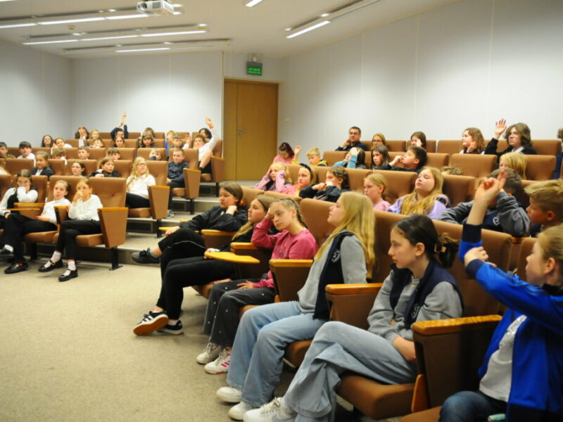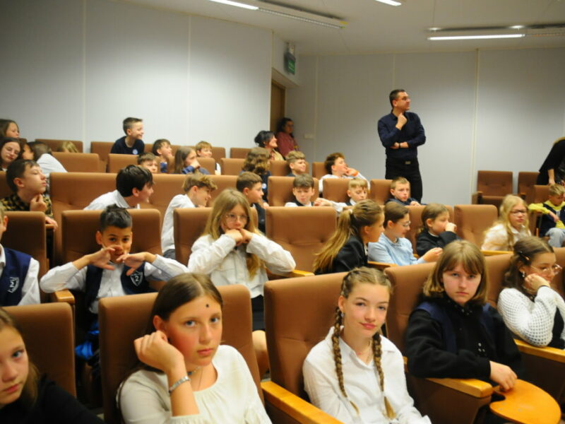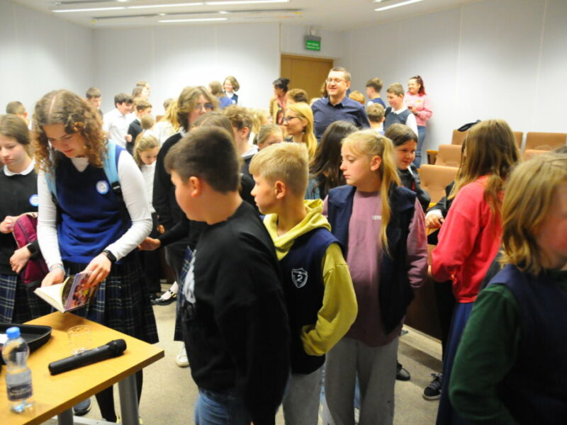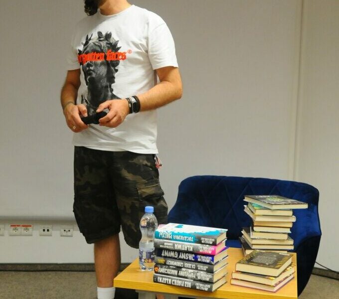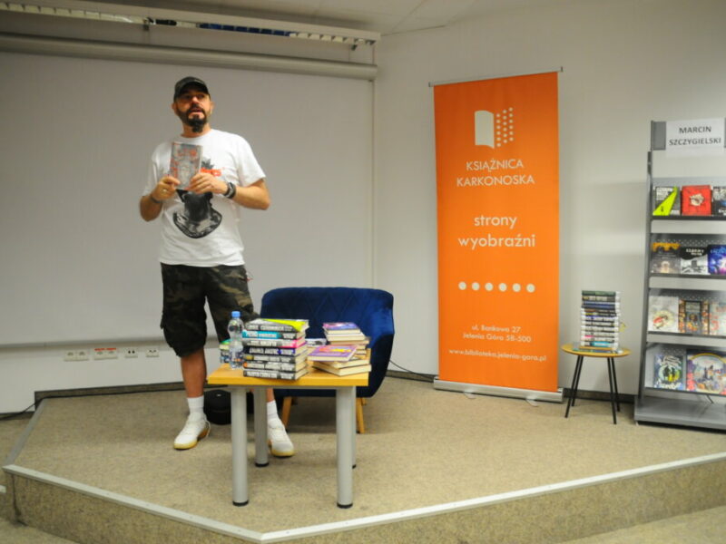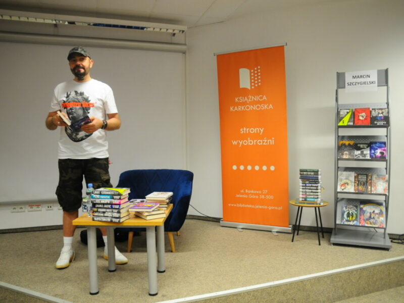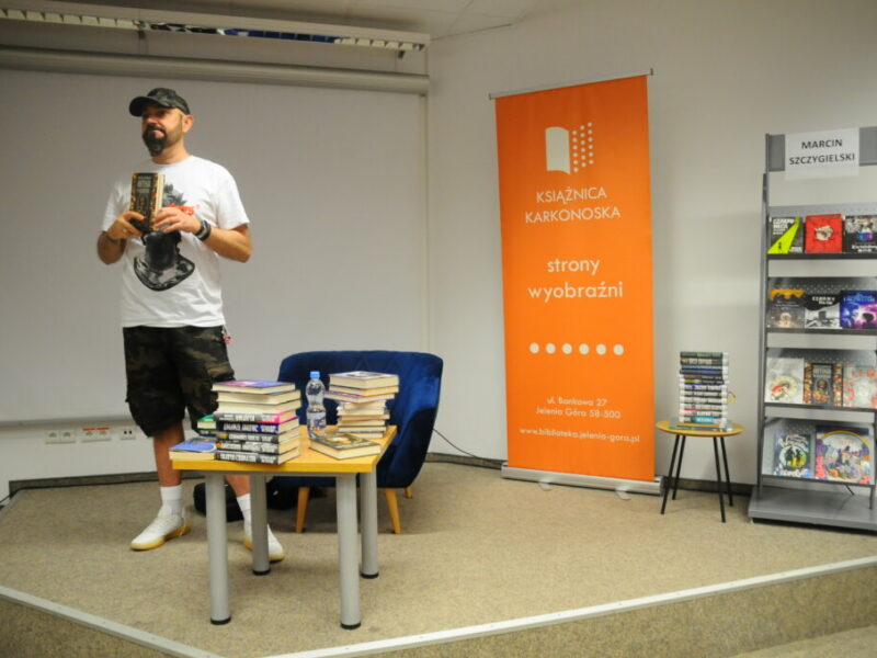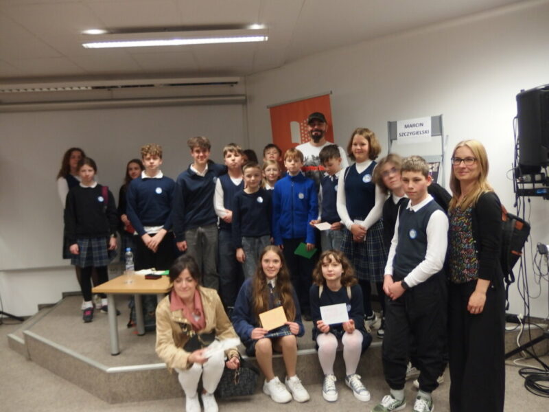 W trakcie spotkania Marcin Szczygielski opowiedział młodzieży o swojej drodze do pisarskiej kariery, zaprezentował swoje książki i przeczytał fragment jednej z nich. Z ogromną cierpliwością odpowiadał uczestnikom na ich pytania. A tych było naprawdę wiele i dotyczyły nie tylko książek! Przy tym autor chętnie rozmawiał z młodymi ludźmi o tym, co ich ciekawi i inspiruje.