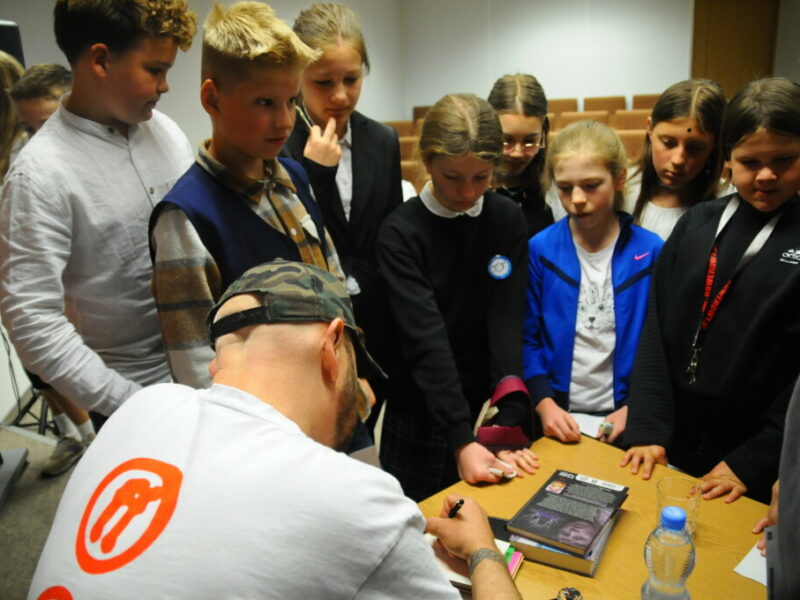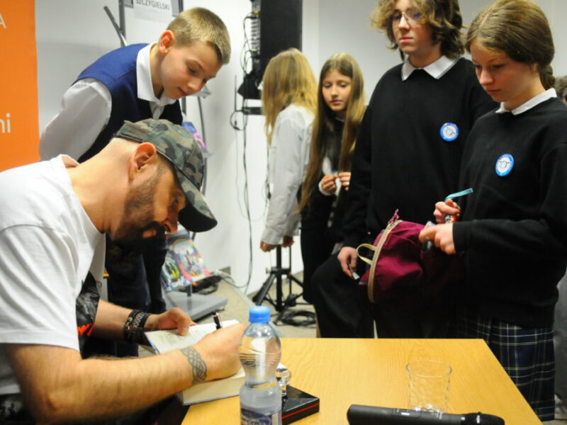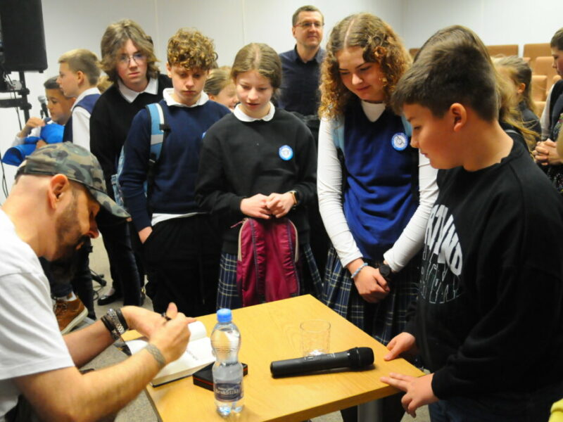 Spotkanie z jednym z najpopularniejszych współcześnie pisarzy było dla uczniów nie tylko okazją do zdobycia dedykacji autora w ulubionej książce, ale również, a może przede wszystkim, rozmową o rzeczach życiowo dla nich ważnych.
