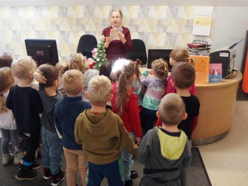 Smerfy z Miejskiego Przedszkola nr 2 w Jeleniej Górze poznały dziś wnętrza Biblioteki Dziecięco-Młodzieżowej, wysłuchały zasad korzystania z bibliotecznych zbiorów i oglądały niecodzienne książki. Rozpoznawały literackich bohaterów i słuchały zaczarowanych opowieści o książkach. Na pamiątkę spotkania wykonały zimowe zakładki do swoich książek.