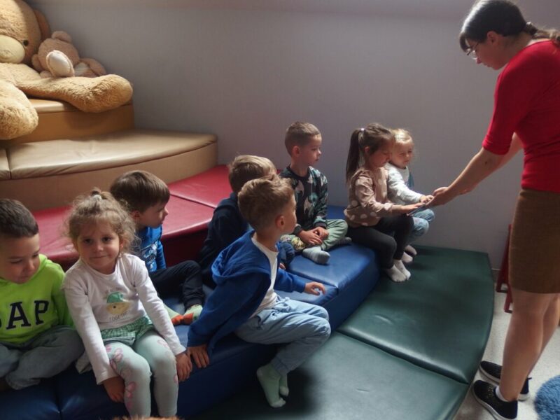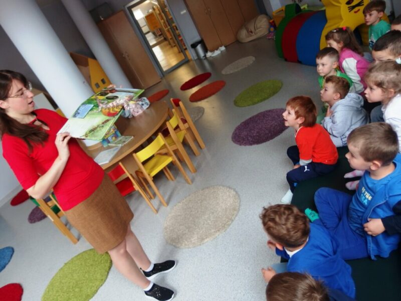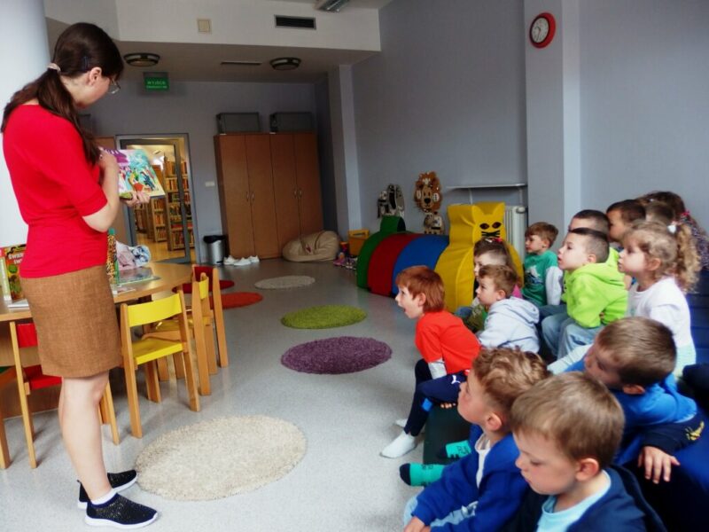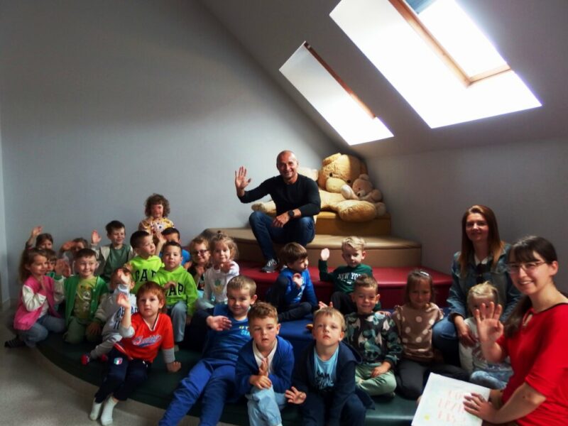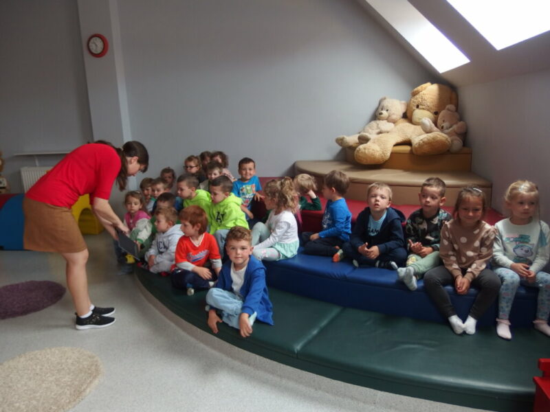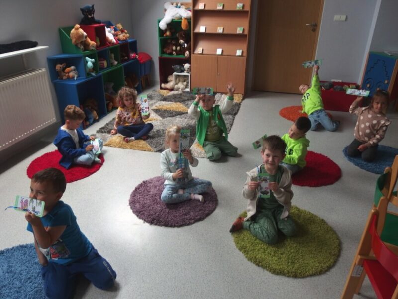 W dzisiejszy czerwcowy poniedziałek Bibliotekę Dziecięco-Młodzieżową odwiedziły „Tęczowe Nutki” z Miejskiego Przedszkola nr 27 „Okrąglaczek”. Pokazałyśmy im nasze zbiory, objaśniając gdzie mogą znaleźć książkę z danego tematu. Przyjrzeliśmy się wspólnie grom planszowym i zwiedziliśmy nasze czytelnie. Tam mieliśmy czas, żeby dokładniej przejrzeć wybrane tomy z naszego księgozbioru podręcznego, które bawiły nas dźwiękami, zachwycały kolorami, pomysłowym wykonaniem i przestrzennymi rozkładankami. Nie zabrakło kilku zagadek o znanych postaciach z bajek, z którymi dzieci poradziły sobie śpiewająco. Miłą niespodzianką była wizyta dyrektora Książnicy Karkonoskiej Piotra Iwańca, który z entuzjazmem przywitał przedszkolaki i zgodził się na wspólne zdjęcie. Później po krótkiej zabawie, mogliśmy zabrać się za kolorowanie zakładek do książek (oby jak najczęściej służyły „Tęczowym Nutkom”).