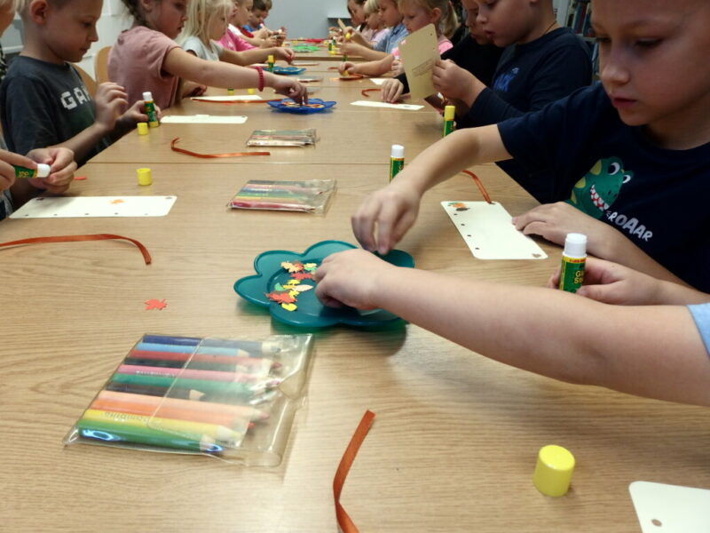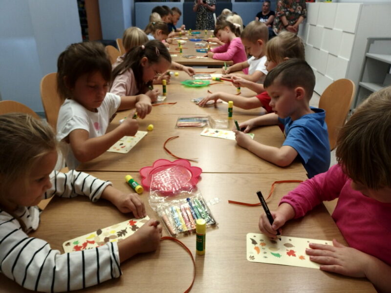 Na dzisiejszych zajęciach dzieciom z Miejskiego Przedszkola nr 2 w Jeleniej Górze, została zaprezentowana Biblioteka Dziecięco-Młodzieżowa. Zwiedzając bibliotekę przedszkolaki wzięły udział w małym literackim quizie. Nazywały bohaterów książek dla najmłodszych i przypominały sobie ich przygody. Następnie powtórzyliśmy sobie zasady poszanowania książek oraz zasady korzystania z czytelni dla najmłodszych. Dzieci wysłuchały opowiadania pt. „Kolorowy Potwór” i wraz z głównym bohaterem uczyliśmy się jak rozpoznawać i nazywać emocje. Na zakończenie zajęć  przedszkolaki wykonały jesienne zakładki.