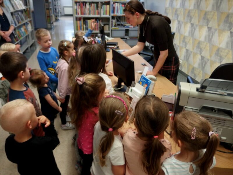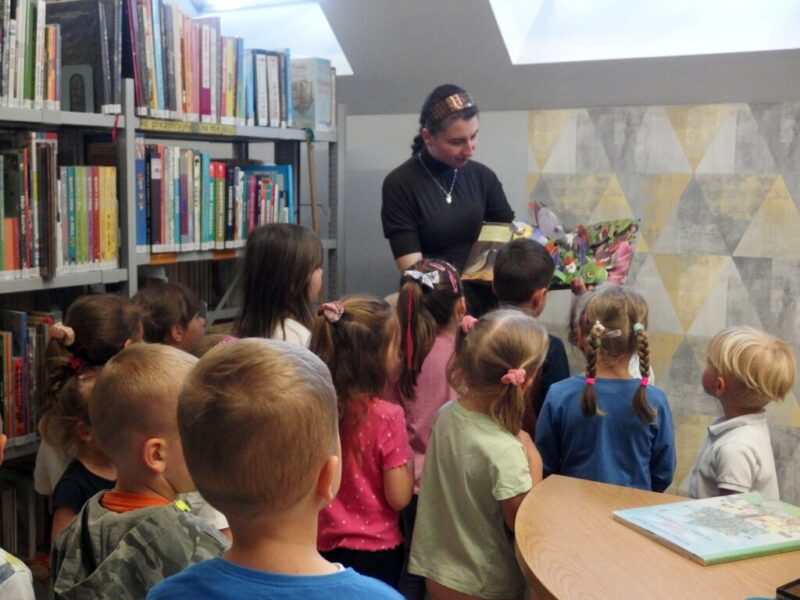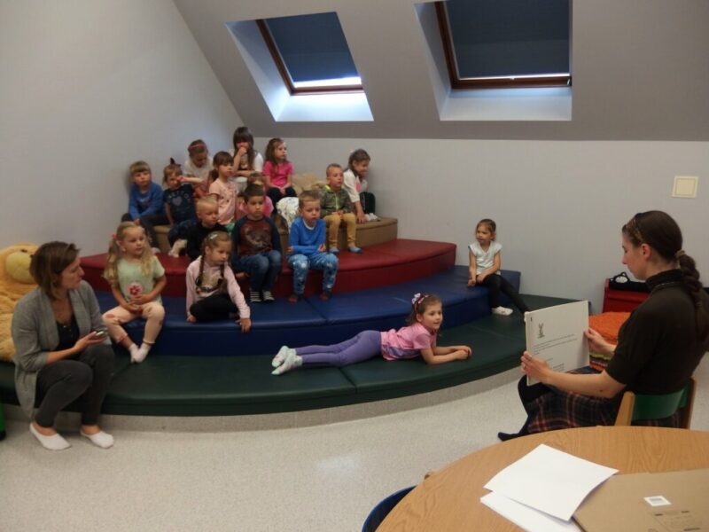 W środowe, letnie przedpołudnie Bibliotekę Dziecięco-Młodzieżową odwiedziły „Niedźwiadki” z NP „Kacperek” z Jeleniej Góry. Dowiedziały się, co zrobić, by założyć kartę, jak wypożyczać książki i jakie ciekawe tomy oraz planszówki można u nas znaleźć.