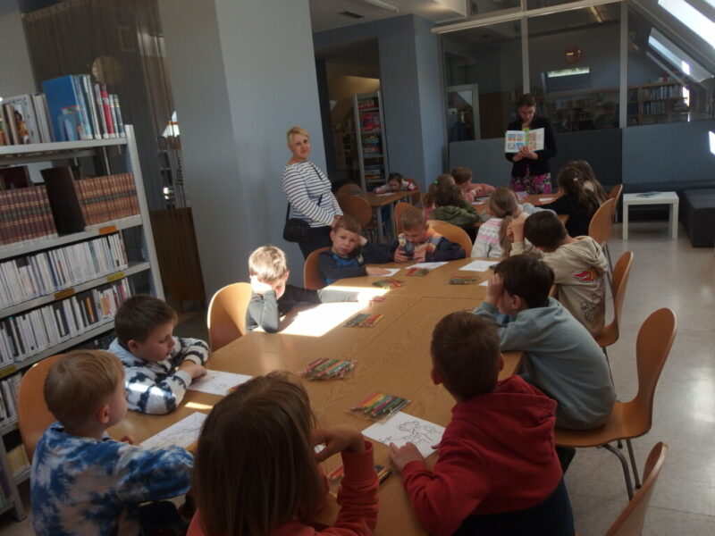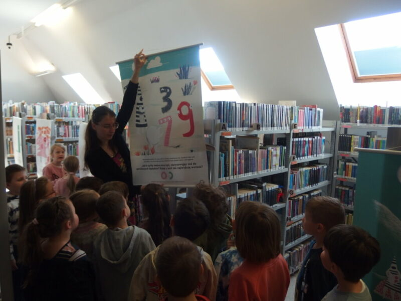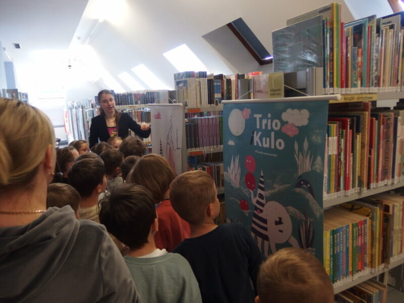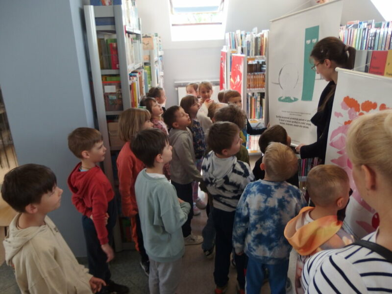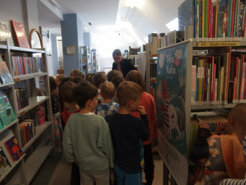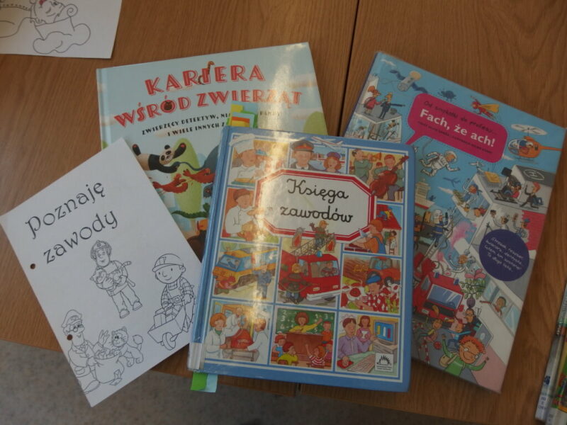 W wiosenny, piękny wtorek do Biblioteki Dziecięco-Młodzieżowej dotarły „Słoneczka” z Miejskiego Przedszkola nr 2 i wspólnie zechciały pobawić się w matematyczne wyzwania razem z Kulem i Trio. Po obejrzeniu wystawy i wykonaniu wszystkich zadań, mogliśmy przejść do naszej czytelni dla starszaków. Tam przy stolikach omówiliśmy różne zawody, korzystając z kilku wybranych książek. Później za to sięgnęliśmy do tematycznych kolorowanek! Okazało się, że na odwrocie kartek znajdują się wierszyki o konkretnym zawodzie, który trzeba było znaleźć i dopasować nazwą. Strona po stronie… złożyliśmy własną książkę „Poznajemy zawody”, która będzie pamiątką z tych zajęć bibliotecznych.