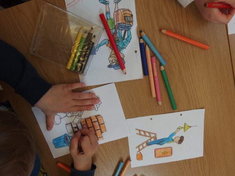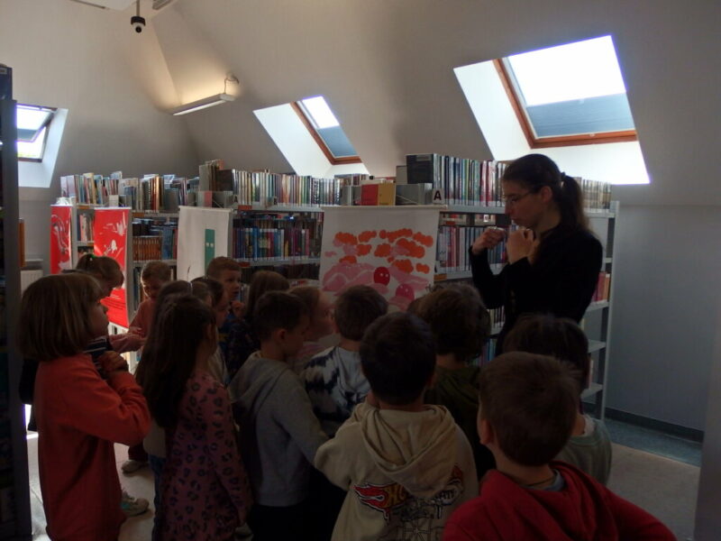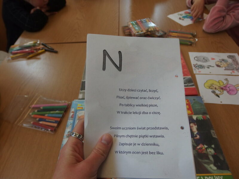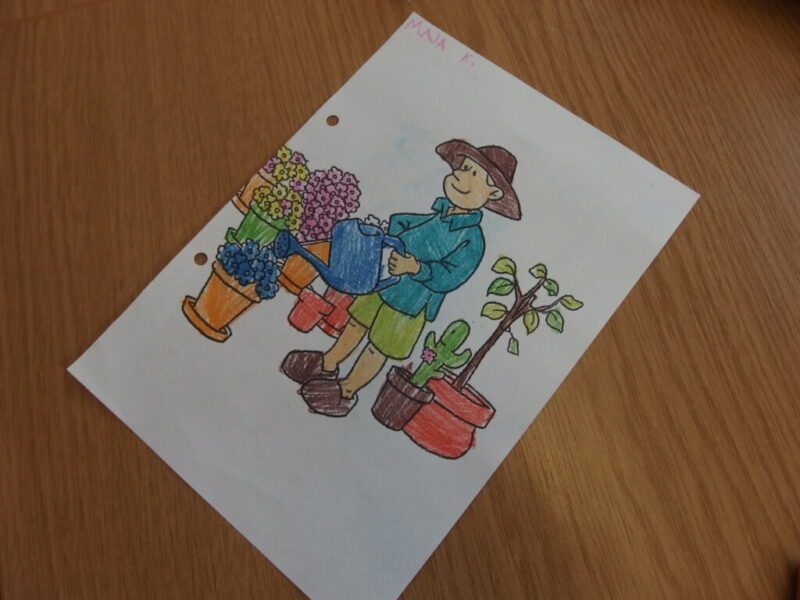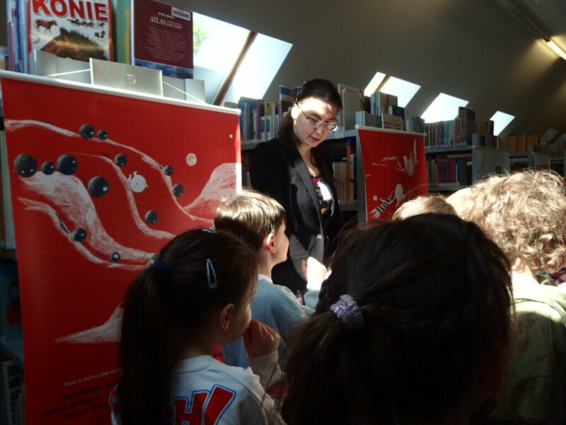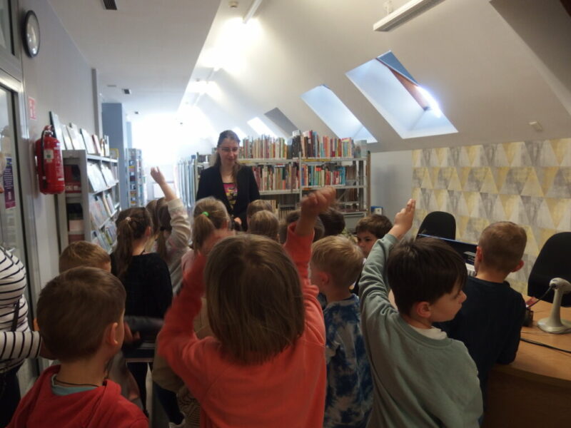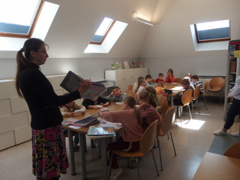 W wiosenny, piękny wtorek do Biblioteki Dziecięco-Młodzieżowej dotarły „Słoneczka” z Miejskiego Przedszkola nr 2 i wspólnie zechciały pobawić się w matematyczne wyzwania razem z Kulem i Trio. Po obejrzeniu wystawy i wykonaniu wszystkich zadań, mogliśmy przejść do naszej czytelni dla starszaków. Tam przy stolikach omówiliśmy różne zawody, korzystając z kilku wybranych książek. Później za to sięgnęliśmy do tematycznych kolorowanek! Okazało się, że na odwrocie kartek znajdują się wierszyki o konkretnym zawodzie, który trzeba było znaleźć i dopasować nazwą. Strona po stronie… złożyliśmy własną książkę „Poznajemy zawody”, która będzie pamiątką z tych zajęć bibliotecznych.