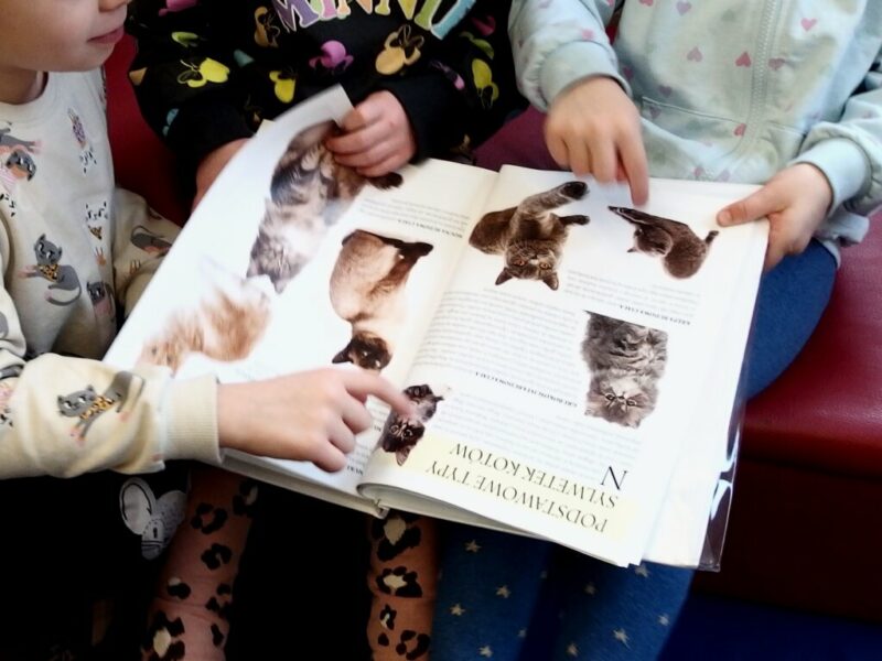Tym razem podążaliśmy kocimi tropami razem z grupą „Kotków” z jeleniogórskiego przedszkola „Król Maciuś”. Nasza wyprawa rozpoczęła się 11 stycznia, w czytelni dla najmłodszych w Bibliotece Dziecięco-Młodzieżowej i prowadziła przez atlas o kocich rasach oraz kilka książek o wychowywaniu, pielęgnacji i opiece nad tymi zwierzętami, nie zabrakło również opowiadań o Filemonie i Bonifacym. Główną atrakcją był jednak teatrzyk, w którym poznaliśmy bardzo zapatrzoną w siebie i leniwą kotkę Milusię, która nad wolność przedkładała codzienną możliwość zjedzenia zawartości puszki z jagnięciną.