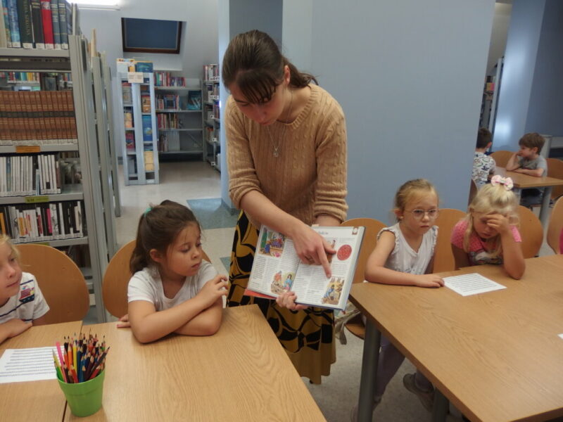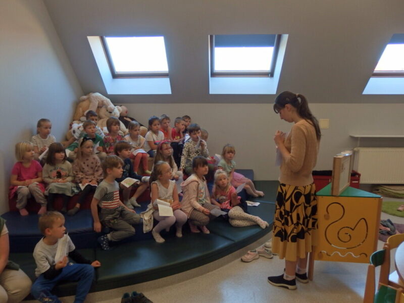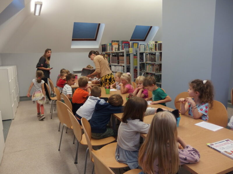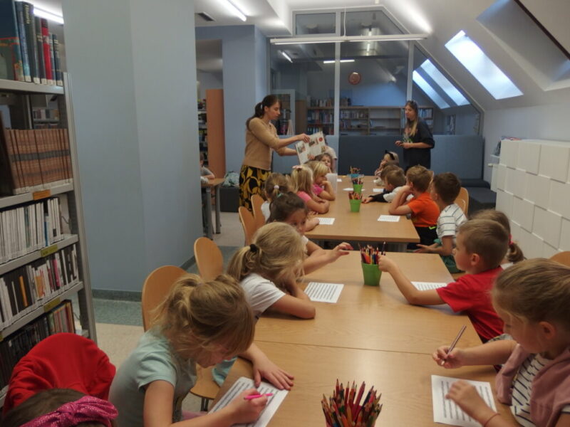 26 września do naszej Biblioteki przyfrunęły „Motylki” z NP nr 5 „Piątka” w Jeleniej Górze. Najpierw, dzięki książkom o epoce średniowiecza, dowiedzieliśmy się, jak wyglądały dawniej buty oraz jak je wykonywano, a także co to znaczy, że rzemieślnicy zrzeszali się w cechach. Następnie razem z dziećmi próbowaliśmy rozwiązać zagadki rozdzielania maku od piasku, znalezienia złotego kluczyka w jeziorze bibuły oraz wskazania królewny spośród dziewięciu takich samych panien.