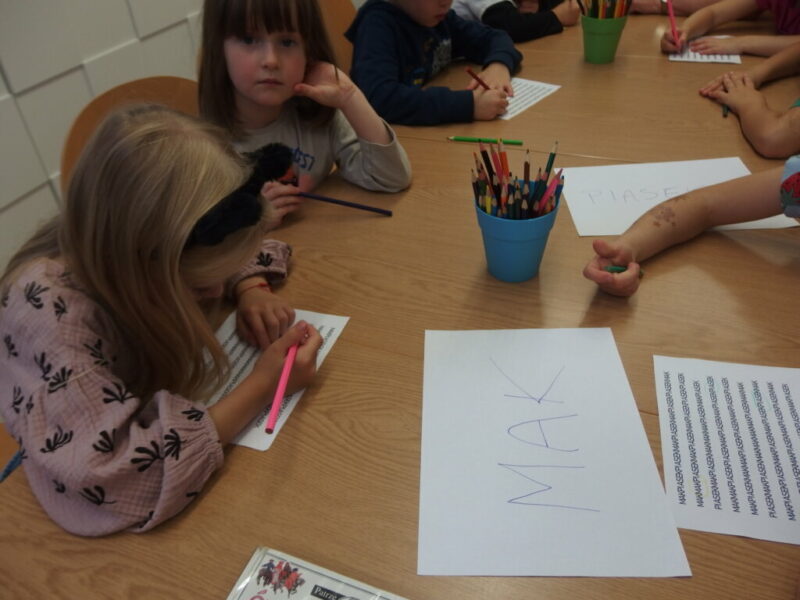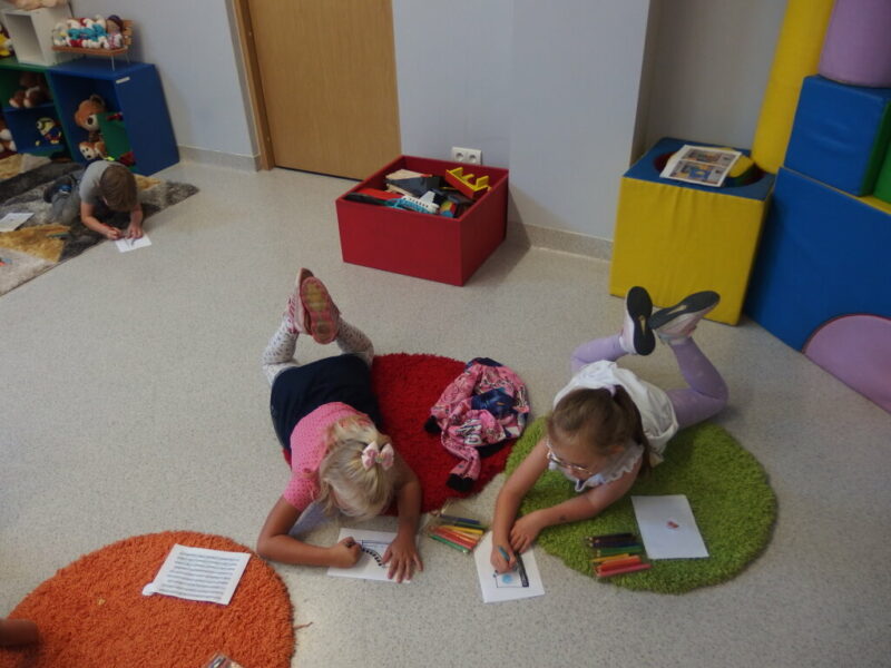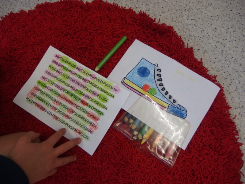 Po przejściu tych niebagatelnych prób i otrzymaniu odznak: mrówki, kaczuszki i pszczoły, pokolorowaliśmy obrazki butów, by pomóc Dratewce stworzyć nowe wzory. Po tylu przygodach mogliśmy spokojnie usiąść i wysłuchać „Bajki o prawdziwym Szewczyku Dratewce”, by przekonać się, jak ów bohater poradził sobie z trudnymi, zleconymi przez złą czarownicę zadaniami. Nasza bajkowa zabawa niewątpliwie miała szczęśliwe zakończenie.