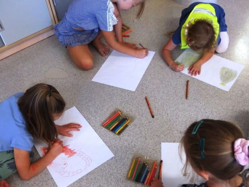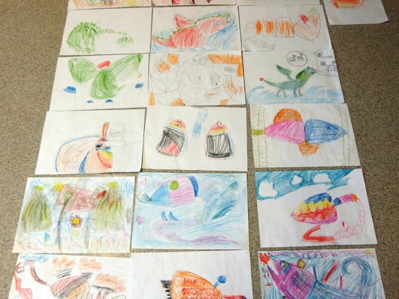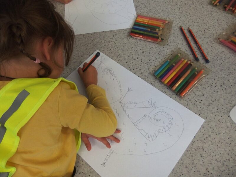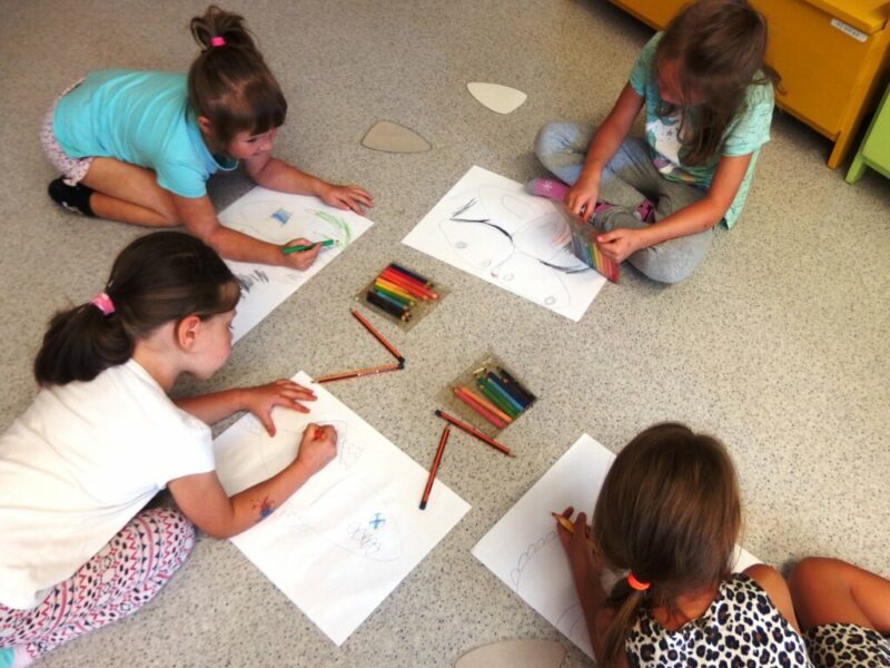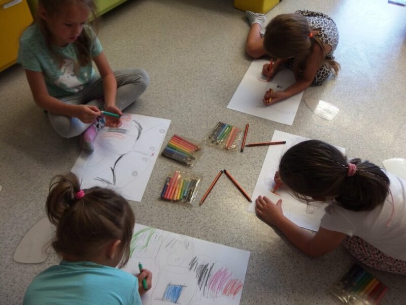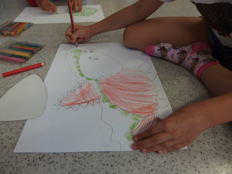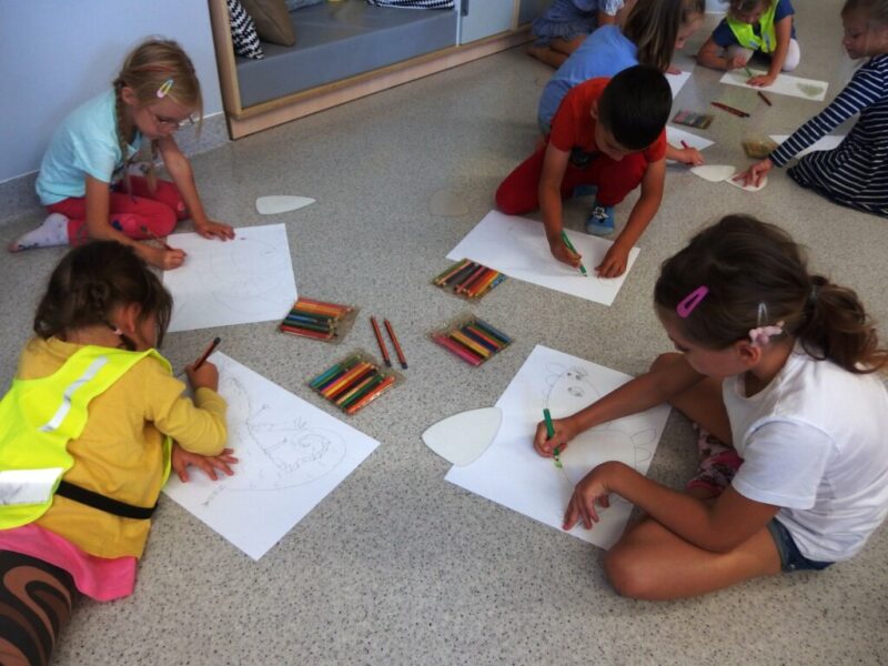 Smoki nie należą do ulubionych bohaterów bajek, a jeśli już zyskują popularność, to ciągnie się za nimi owiana grozą sława. Czy jednak wszystkie smocze istoty  napadają na wioski, porywają księżniczki i zieją ogniem podpalając domostwa? Razem z przedszkolakami  z grupy Muchomorki z Miejskiego Przedszkola nr 2 w Jeleniej Górze dowiedzieliśmy się, że  w smoczych królestwach żyją również smoki bardzo mądre, które służą dobrą radą tym, którzy potrafią z nimi rozmawiać oraz takie, które pomagają bohaterom baśni pokonać czarowników. Potrafią latać i pływać – nawet, jeśli nie posiadają skrzydeł czy płetw. Bywają niekiedy strażnikami wielkich skarbów,  Wysłuchaliśmy opowieści wyczarowanej papierowym teatrem pt. „Smok wawelski: prawdziwa historia”. Przyglądaliśmy się smokom ze wszystkich stron świata zwracając uwagę na budowę ciała, kolorystykę, rodzaj łusek oraz ilość głów i kończyn, a potem stworzyliśmy smocze portrety.
