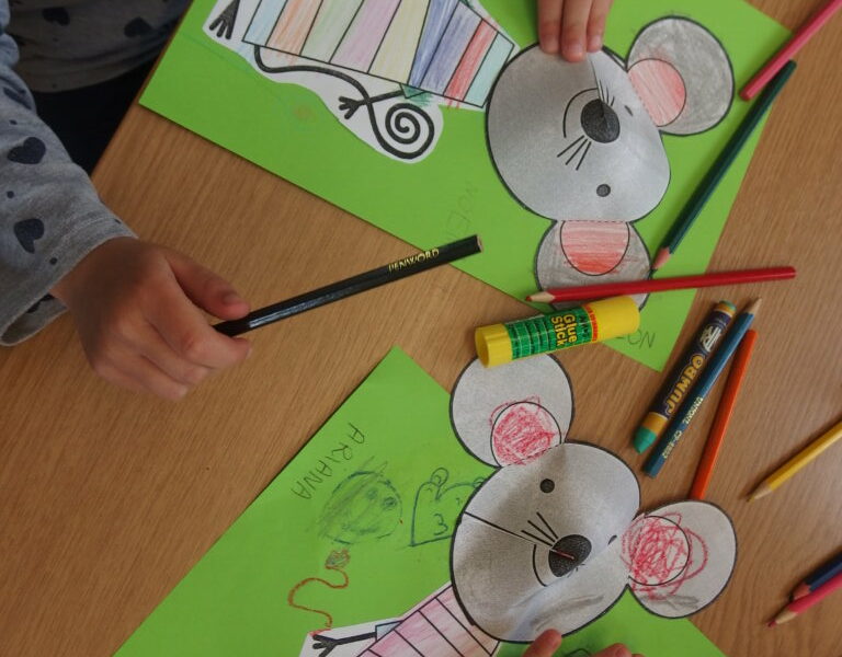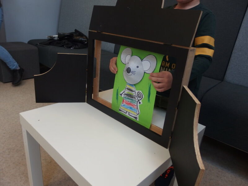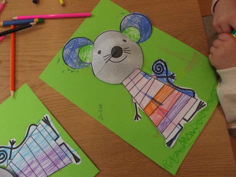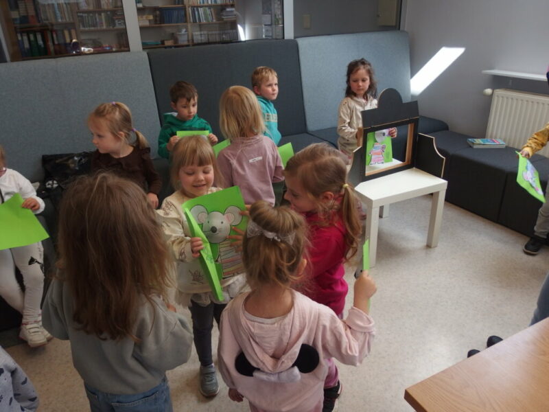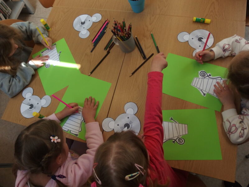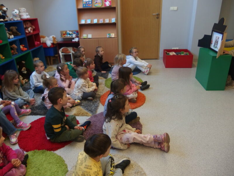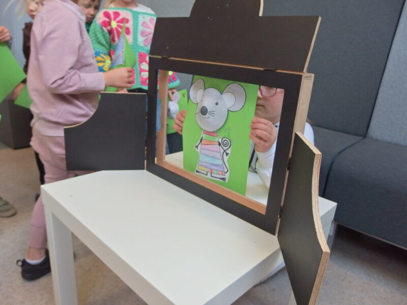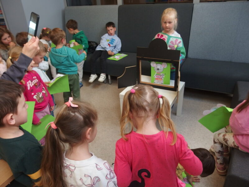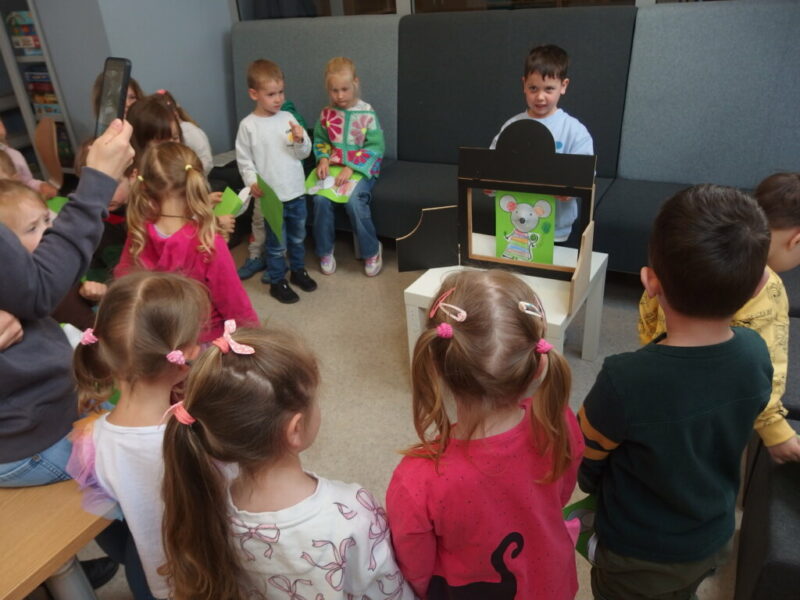 Naszymi gośćmi były 4-latki z Niepublicznego Przedszkola „Tuptuś” w Jeleniej Górze. Dzieci zapoznały się ze światem czarowanym teatrem Kamishibai. Przedszkolaki wysłuchały opowieści „Przygody Myszki Pipi” Joanny Urbańskiej. Z użyciem kleju, kredek i szablonów powstały postaci Myszki, która „wystąpiła” na scenie teatrzyku. Brawa za odwagę.