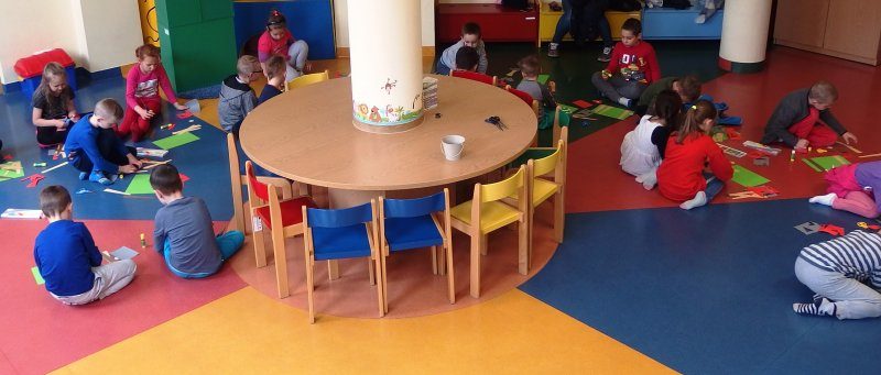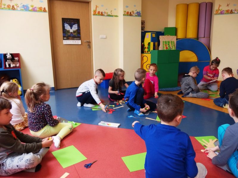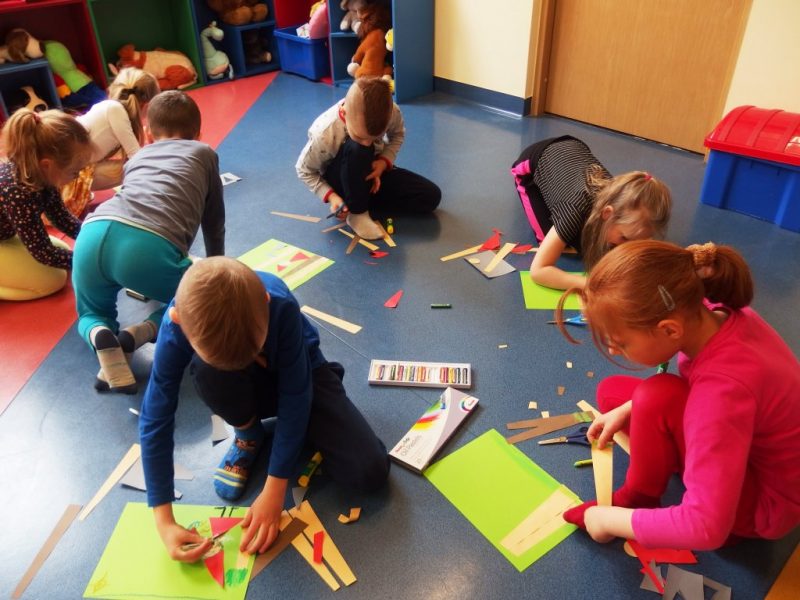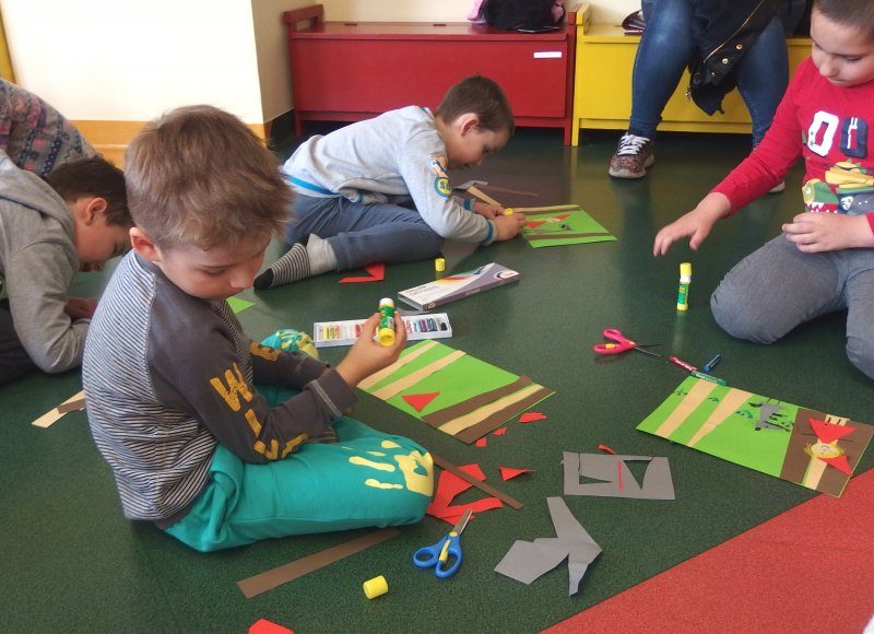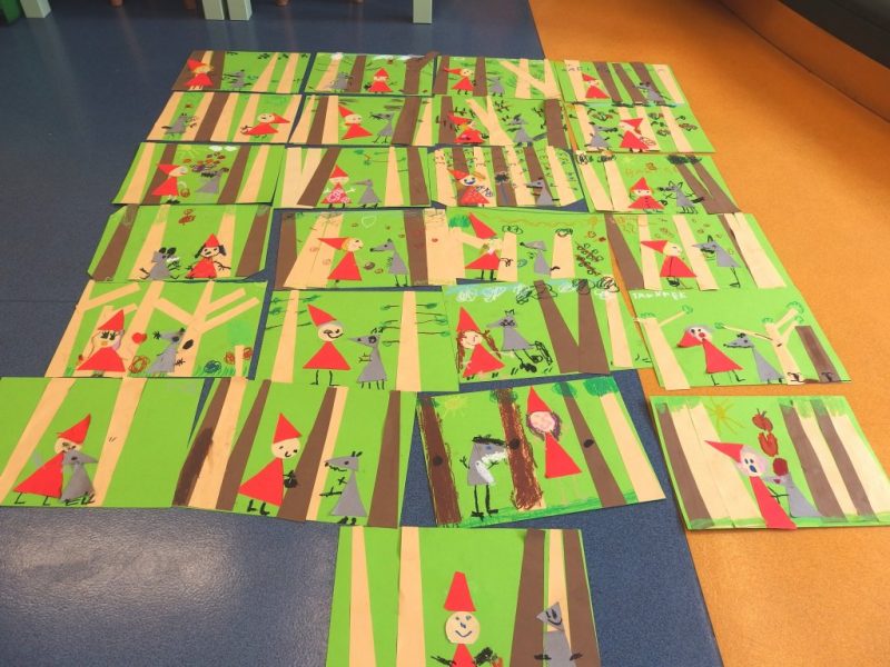 Skrzaty z Niepublicznego Przedszkola „Tuptuś” w Jeleniej Górze wysłuchały baśni i stworzyły ilustracje przedstawiające spotkanie Czerwonego Kapturka z Wilkiem, z wykorzystaniem papierowych elementów oraz pasteli. A jak im wyszło? Zobaczcie sami. 🙂