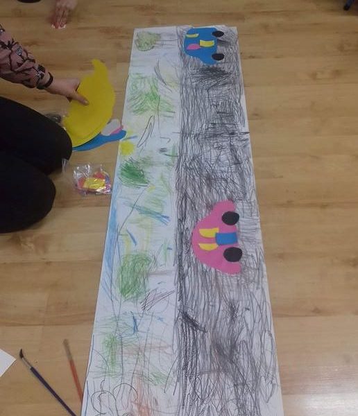 Najmłodsza grupa przedszkolaków wysłuchała opowiadania o Samochodziku Franku. Razem z niebieskim i czerwonym autkiem bawiliśmy się w rymowanki – powtarzanki oraz odgadywaliśmy zagadki o pojazdach. Dzieci wspólnie stworzyły wielką ulicę. 🙂