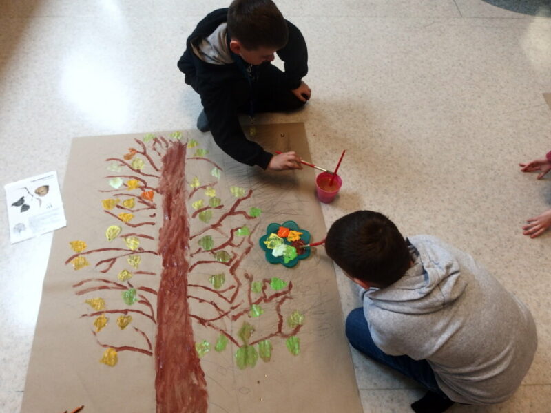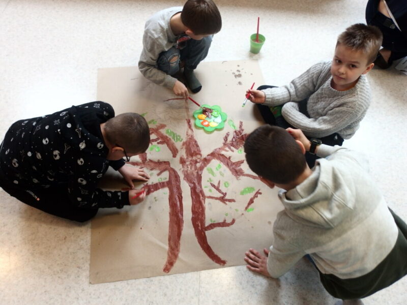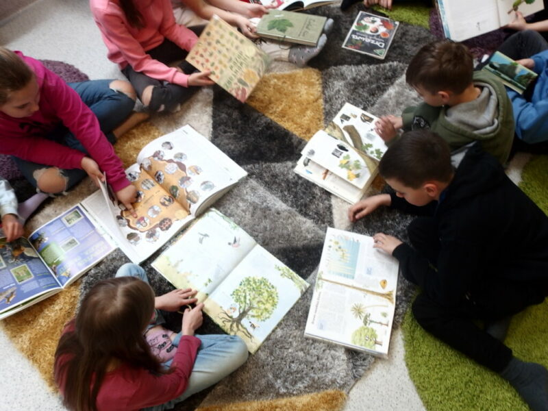 Z okazji Światowego Dnia Ziemi uczniowie klasy III a ze Szkoły Podstawowej nr 8 w Jeleniej Górze wysłuchali „Sto nasionek, które pofrunęły” Isabel Minhos Martins – opowieści ze świata natury o mądrości drzew i zadziwiających umiejętnościach nasion. Rozmawialiśmy o sposobach ochrony roślin, zwierząt oraz zasobów naszej planety. Przeglądając bogato ilustrowane wydawnictwa popularne przyglądaliśmy się drzewom, aby nauczyć się rozpoznawać poszczególne gatunki po korze, koronie, kwiatach, owocach oraz kształcie liści. W części artystycznej wykonaliśmy ilustracje wybranych drzew.