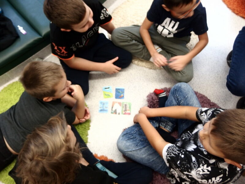 Kontynuując nasze spotkania ze Zwiadowcami oraz Drużyną Johna Flanagana w ramach projektu ZWIADOWCY SĄ ŚWIATU POTRZEBNI, z uczniami kl. IV a rozmawialiśmy o gatunkach powieściowych i ich cechach. Tropiliśmy je w znanych nam powieściach. Za pomocą kart metaforycznych budowaliśmy nasze wymyślone historie z pogranicza gatunków i opowiadaliśmy je.  Na zakończenie wypełnialiśmy kartę pracy omawiającej cechy gatunku.
