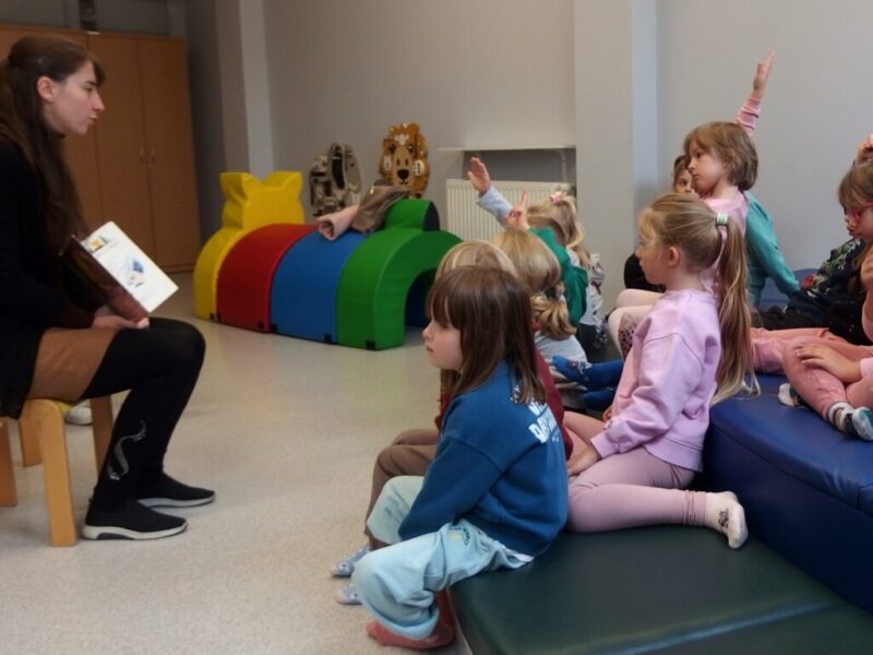 Wraz z przedszkolakami z NP „Piątka” w Jeleniej Górze kończyliśmy dziś szkolny tydzień, przypatrując się pięknym barwom jesieni. W ilustrowanych książkach oglądaliśmy nasiona, owoce, różnorodne, kolorowe liście, jakimi obdarza nas o tej porze roku natura. Nie zabrakło też rodzimych gatunków ptaków, którym warto podsypywać na zimę różne ziarna lub zostawiać skórkę od słoninki, by mogły przetrwać i na wiosnę cieszyć nasze serca swoimi trelami. Później wspólnie śledziliśmy losy panikującej wiewiórki, w książce „Zaginiony liść”, która późną jesienią zaczęła szukać listków „zgubionych” ze swojego domowego drzewa.