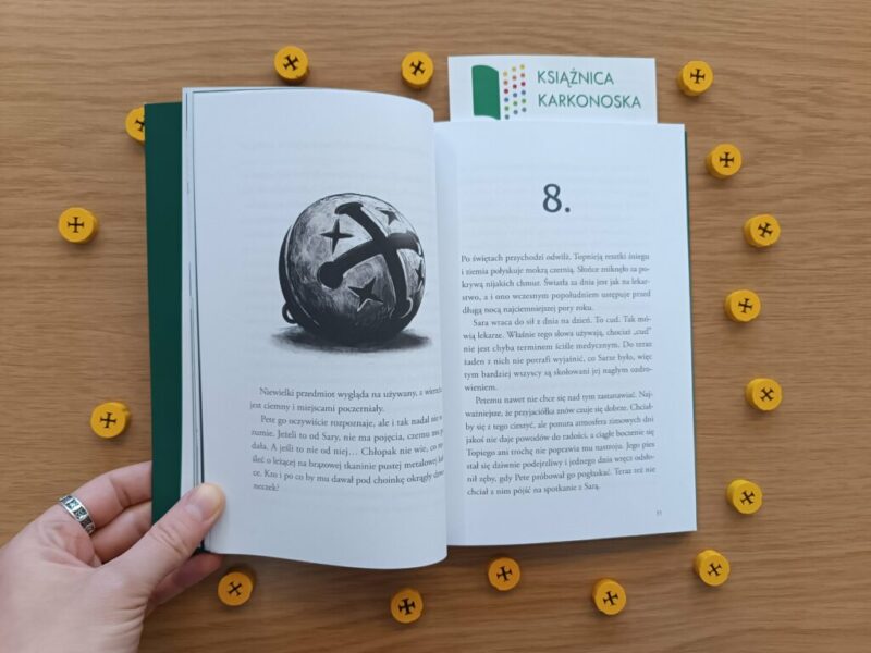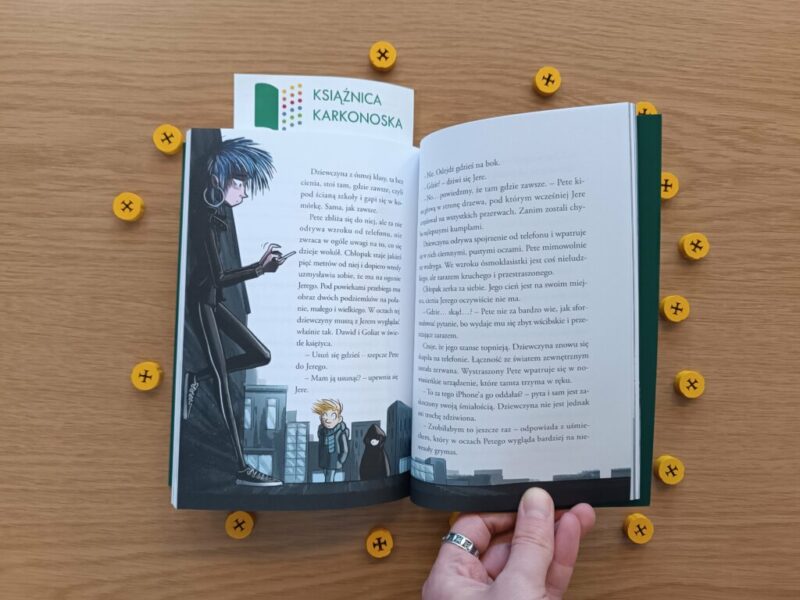Taka tekstowo-graficzna forma niekoniecznie przypadła mi do gustu, większość pomysłów w książce to właściwie strzępki motywów z innej literatury i filmów. Nada się jako ciekawostka, książka wyróżnia się na tle innych, ale nie trzeba sobie wiele po niej obiecywać. Kto poczuł się zaintrygowany – zapraszamy do działu fantastyczno-realistycznego, do Biblioteki Dziecięco-Młodzieżowej. Dla pozostałych – mamy naprawdę bogaty zasób fantastycznych opowieści, w których warto się zanurzyć i przeżyć przygodę wspólnie z ciekawymi bohaterami.