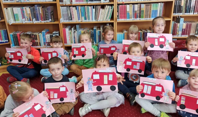 Zajęcia poświęcone poznawaniu specyfiki różnych zawodów. Podczas spotkania czytano książkę Moniki Wittmann „W remizie strażackiej”.