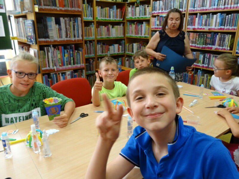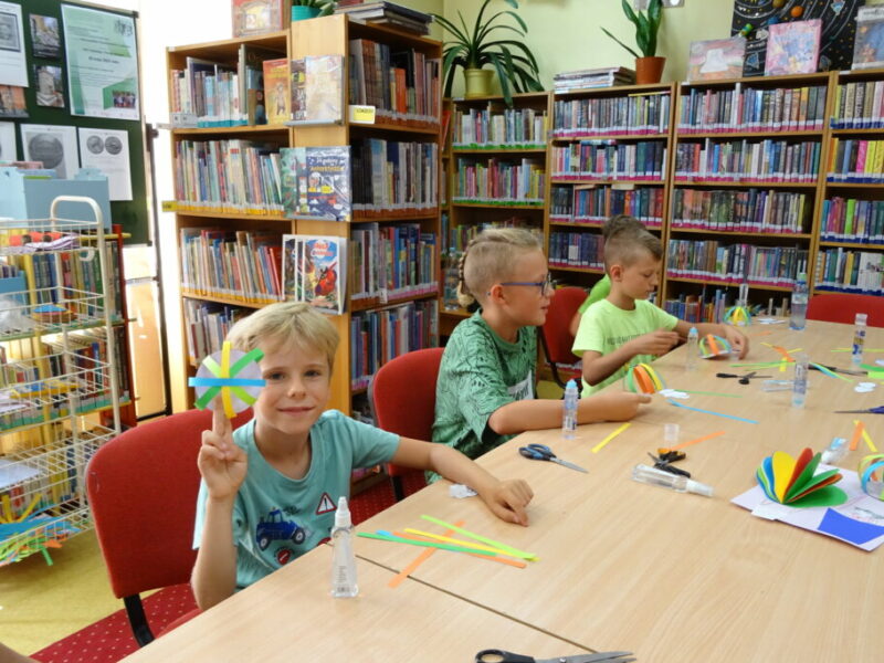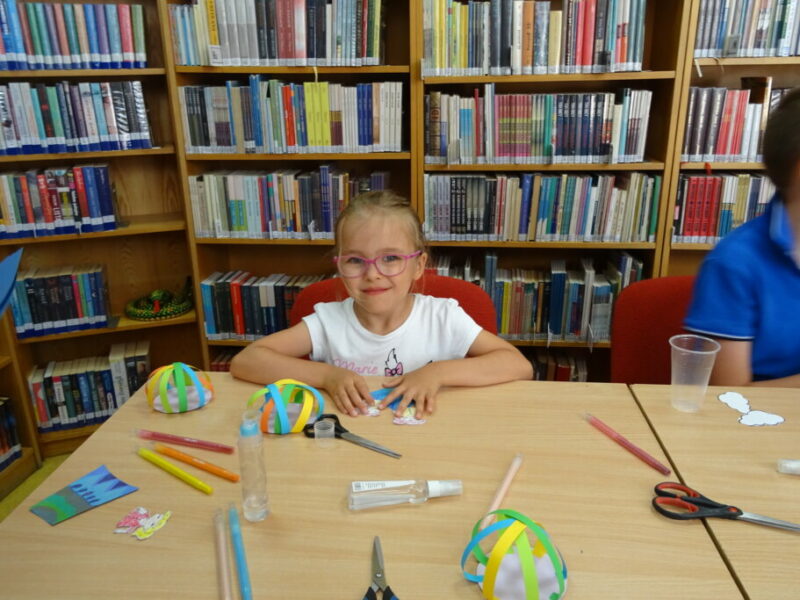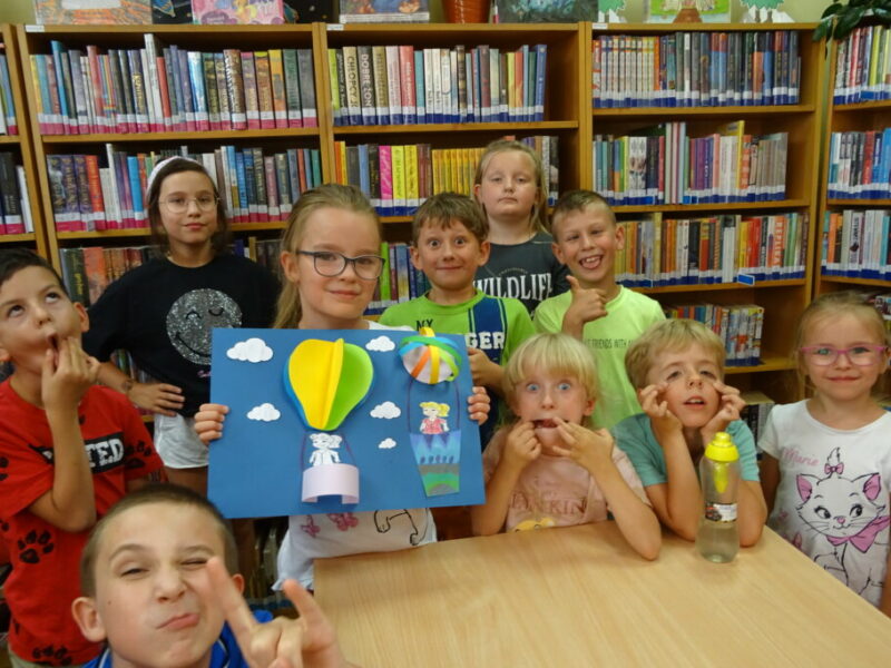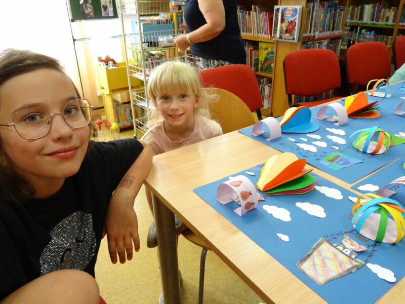 W ramach cyklu „Kreatywne wakacje – biblioteczne atrakcje” dzieci uczestniczyły w zajęciach edukacyjno-plastycznych. Wykonały przestrzenną pracę – modele dwóch balonów, które symbolizują marzenia, podróże i swobodę. Zadanie było realizowane za pomocą różnych technik, takich jak wycinanie, klejenie i malowanie. 🎨🎈