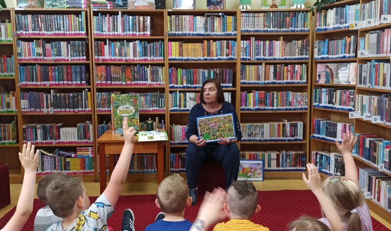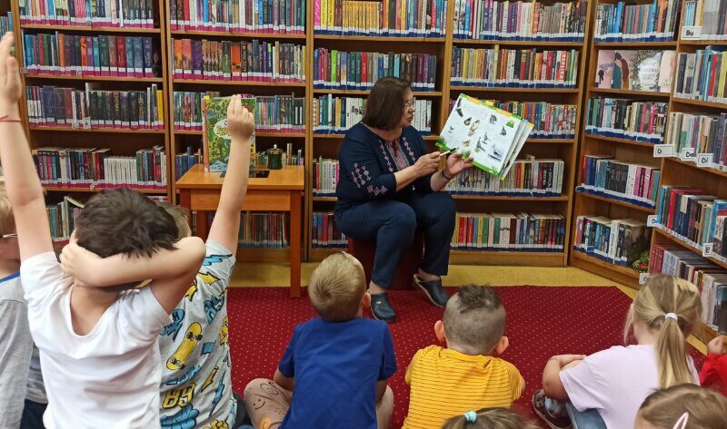 Zajęcia rozwijające wiedzę przyrodniczą oraz uwrażliwiające na piękno przyrody. Podczas spotkania czytano książkę Tomasza Samojlika „O rety! Przyroda” i Joanny Kuryjak, „Atlas przyrodniczy dla dzieci. Zwierzęta i rośliny Polski”.